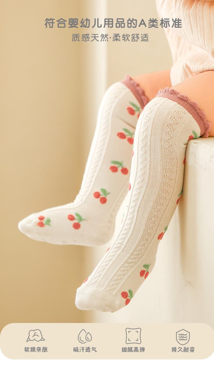 Meias de bebê atacado bonito cereja meninas bebê tubo meias desossado algodão penteado rendas recém-nascido meias de bezerro