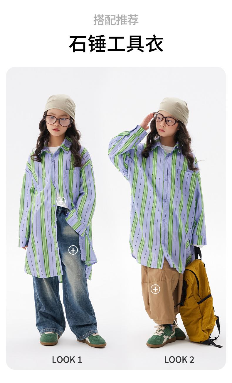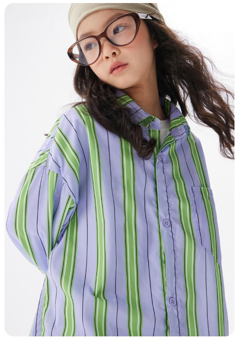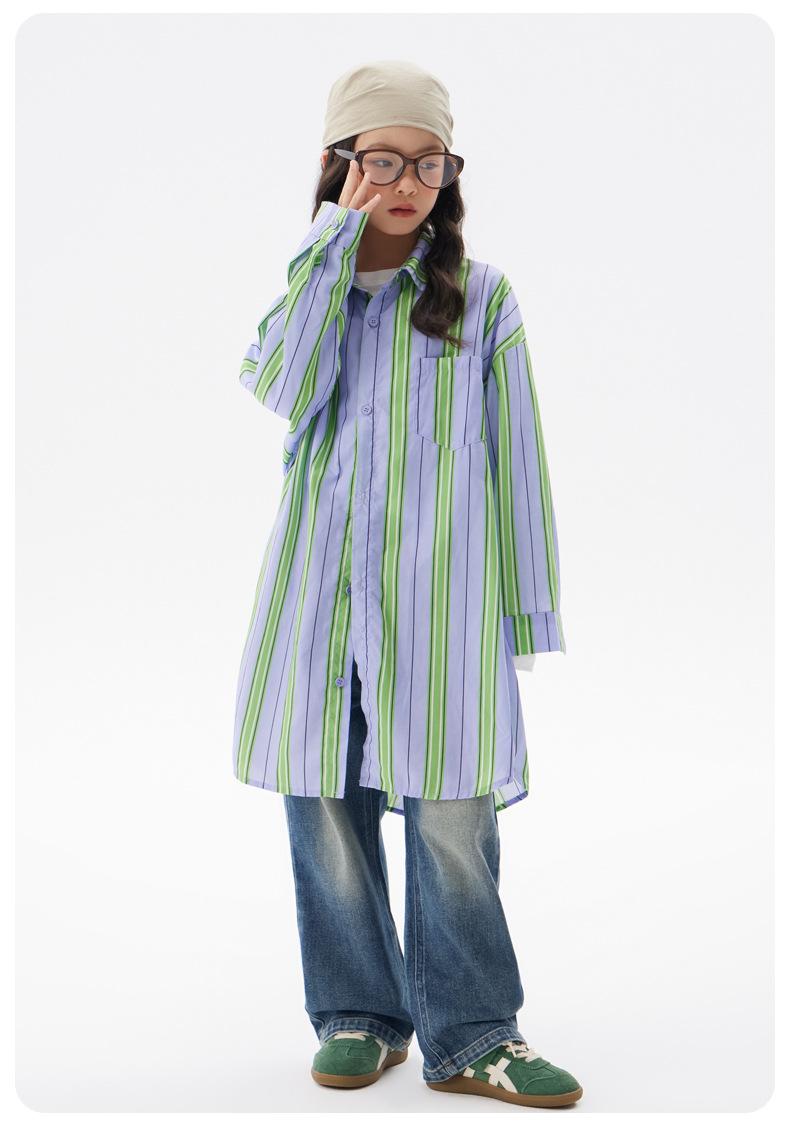 Compre Camisa Casual para Meninas 2025 Outono Nova Infantil Comprimento Médio Listrada Tops Estilo Coreano Camisas de Primavera e Outono para Crianças Grandes no atacado no Joom.pro