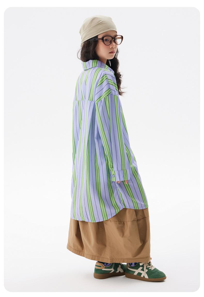 Camisa Casual para Meninas 2025 Outono Nova Infantil Comprimento Médio Listrada Tops Estilo Coreano Camisas de Primavera e Outono para Crianças Grandes