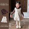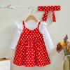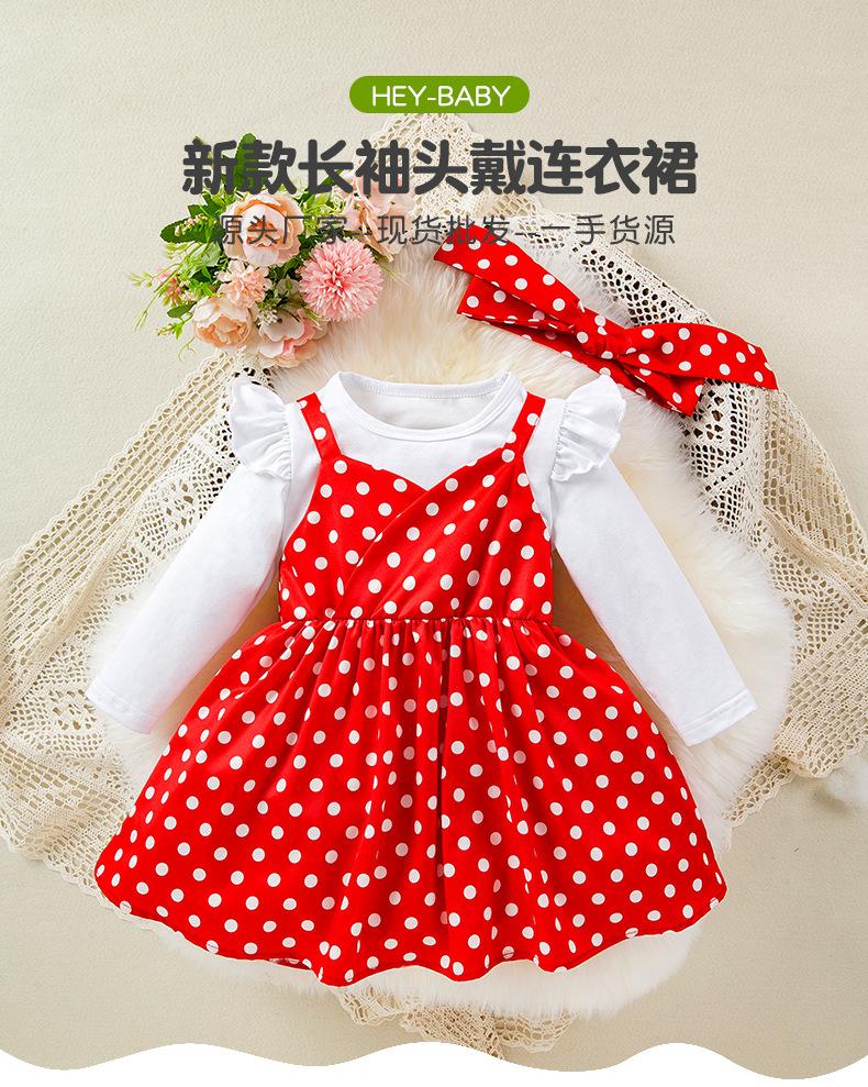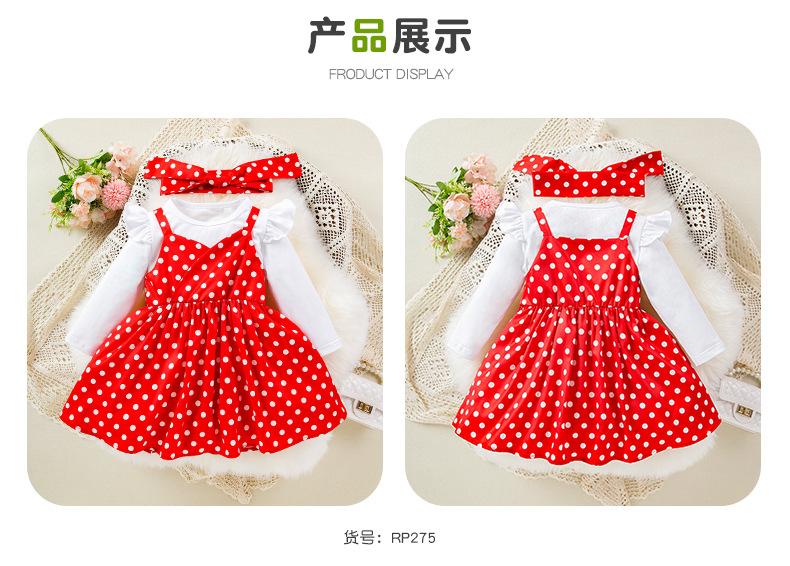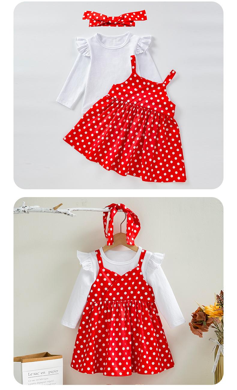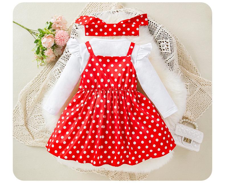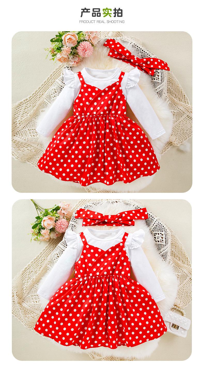 Roupas de primavera e outono para meninas estilo coreano de mangas compridas camisa de assentamento estilingue terno de vestido de bolinhas estilo ocidental doce baby outwear