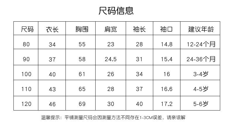 80(12-24 months), 90(24-36 months), 100(3-4 years old), 110(4-5 years old), 120(5-6 years old)