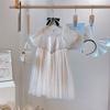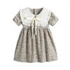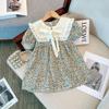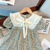 Vestido Floral de Verão para Menina 2025 Novo Vestido de Princesa com Gola de Boneca para Bebê Menina Vestido Infantil Elegante