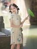Meninas Elegante Impresso Cheongsam 2024 Verão Novo Vestido Estilo Chinês Infantil Saia Elegante para Bebê