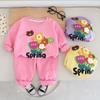 Terno de primavera e outono para meninas 2024 Novo vestido de outono casual infantil para bebês estilo ocidental Rose Vest Clothes Three-piece Set