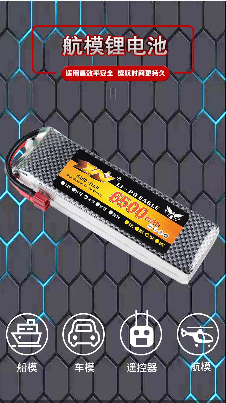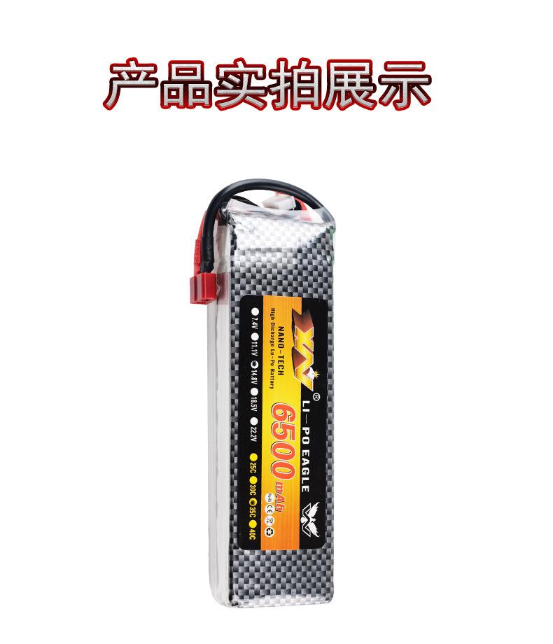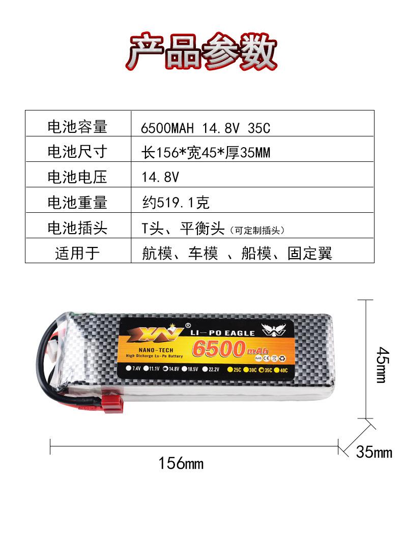Parâmetros da bateria: 4S-14.8V 6500mAh 35C