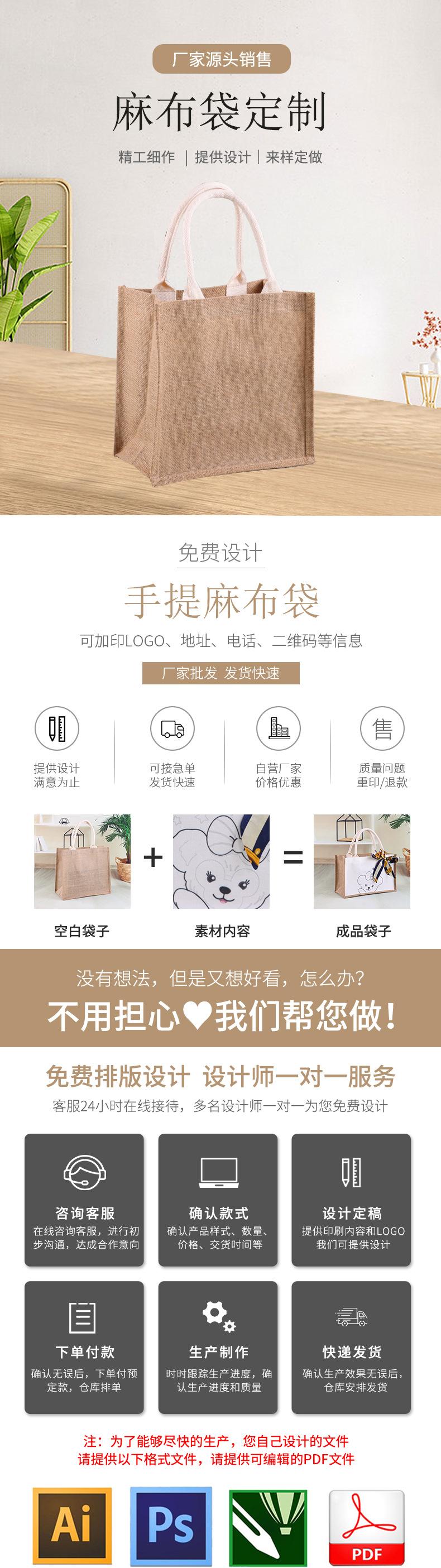 Bolsa de Linho em Branco Lisa Bolsa Grande de Juta Retrô Bolsa de Mão Logo Personalizado Sacola Promocional Tote Bag Personalização