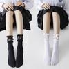 Lolita Lace Lace Bow Cuff Meias Veludo Feminino Médio Comprimento do Joelho Estudante Japonês Preto e Branco Seda