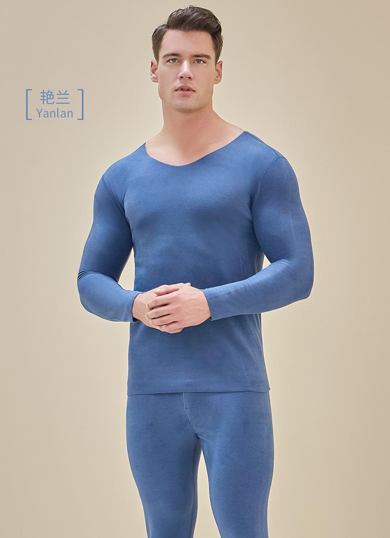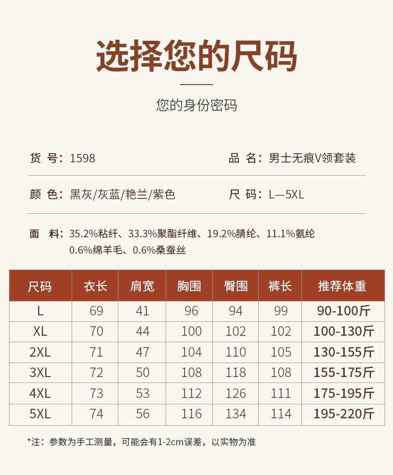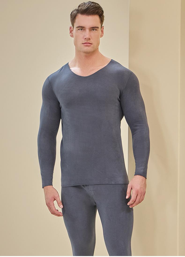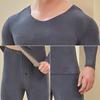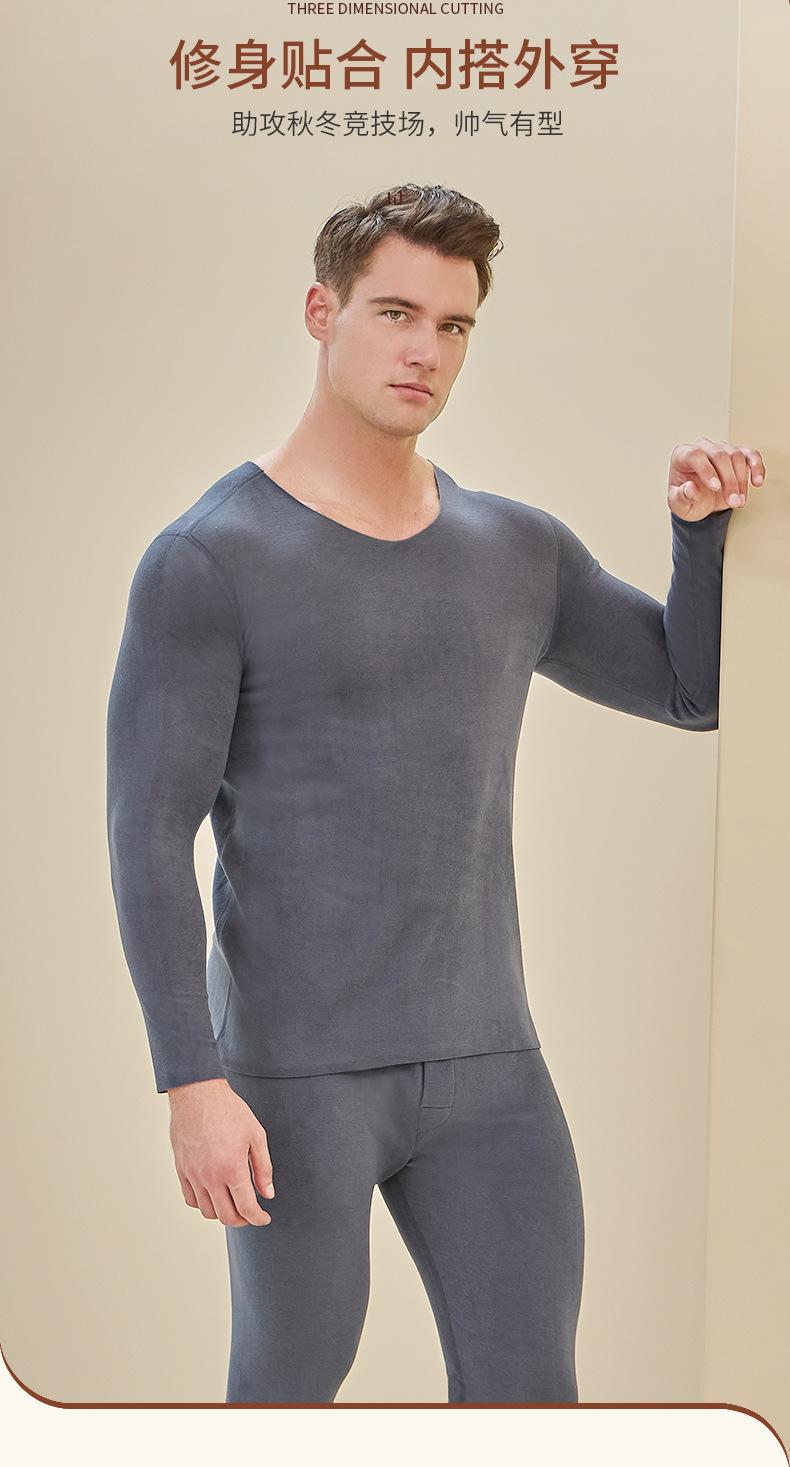 Roupa interior térmica de lã de seda Terno masculino sem marca Decote em V Outono e inverno Veludo alemão engrossado plus size Roupas e calças masculinas de outono