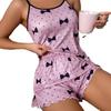 Europeu e Americano Comércio Exterior Verão Das Mulheres Ice Silk Sling Pijamas De Duas Peças Arco Sexy Colete Shorts Roupas Para Casa