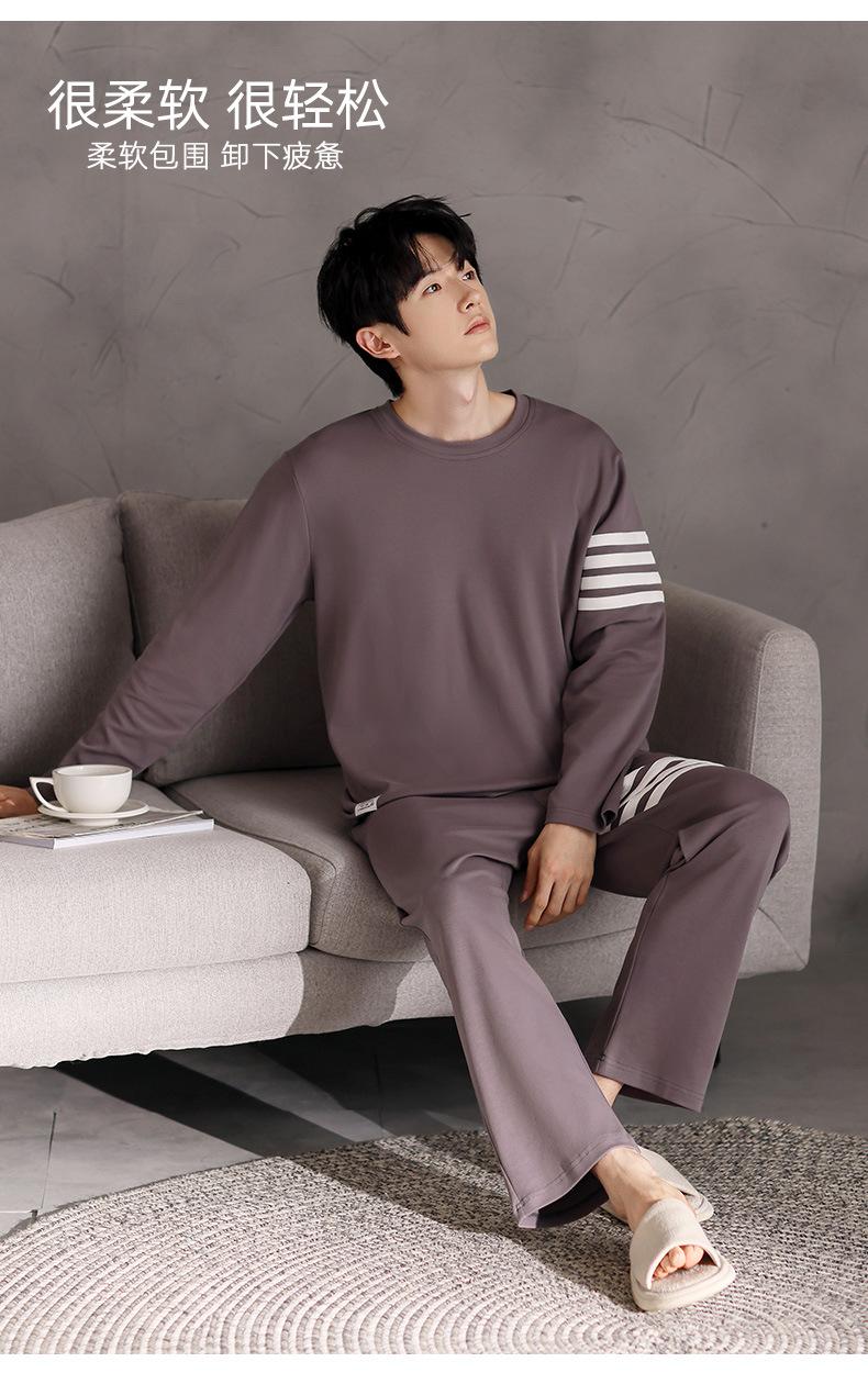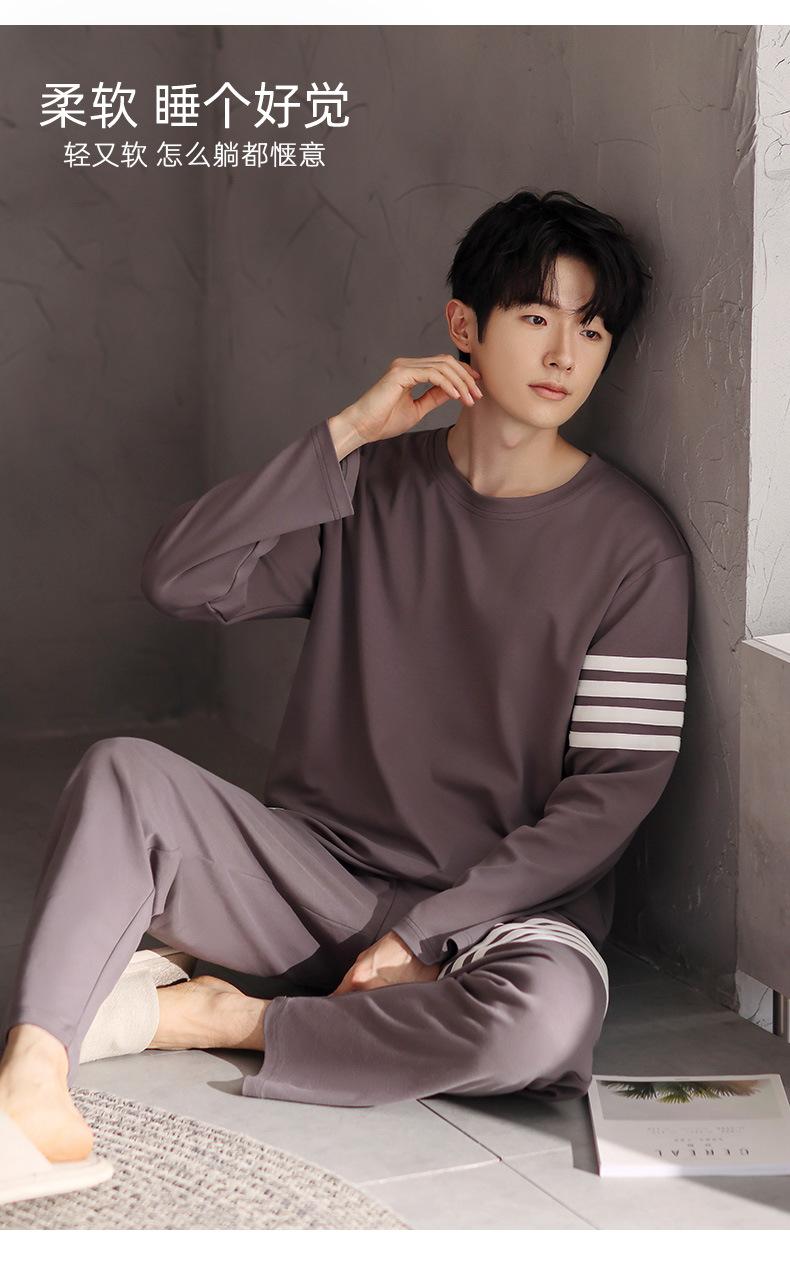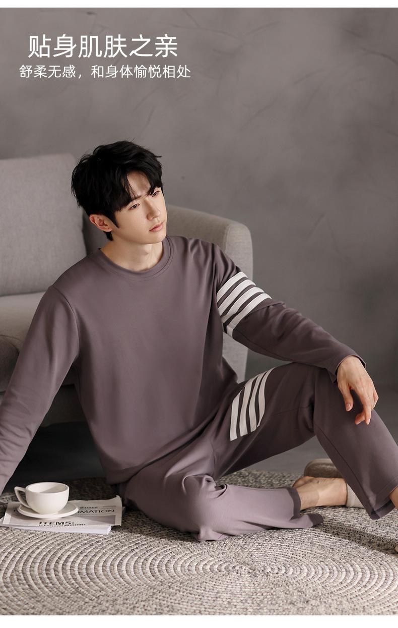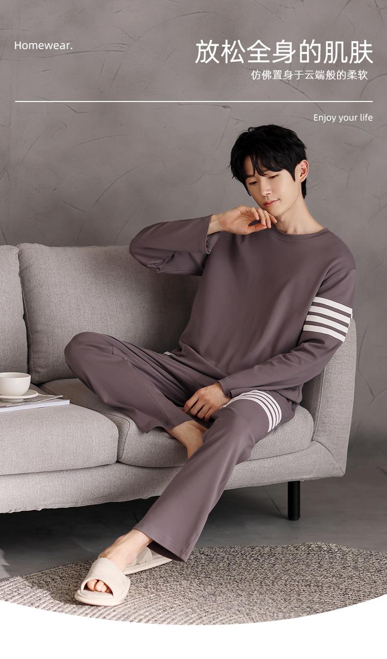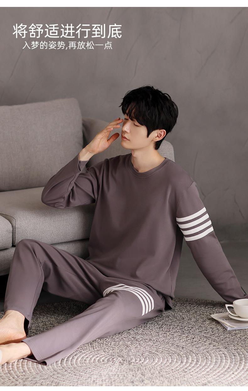 Compre 100% Pijamas de Algodão Puro Outono e Inverno Masculino Novo Terno de Calças de Manga Comprida Pullover High-end Juventude Roupas Masculinas para Casa no atacado no Joom.pro