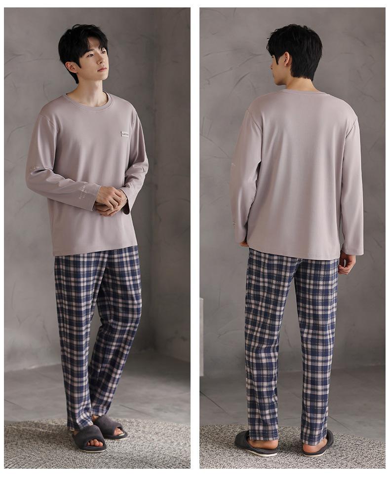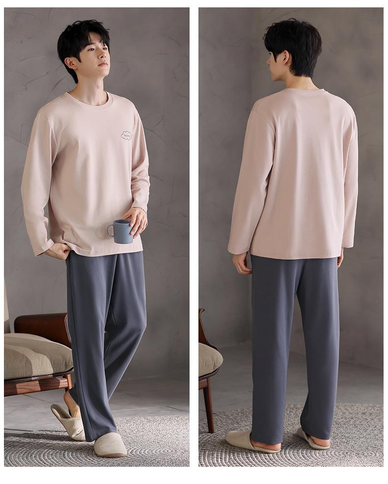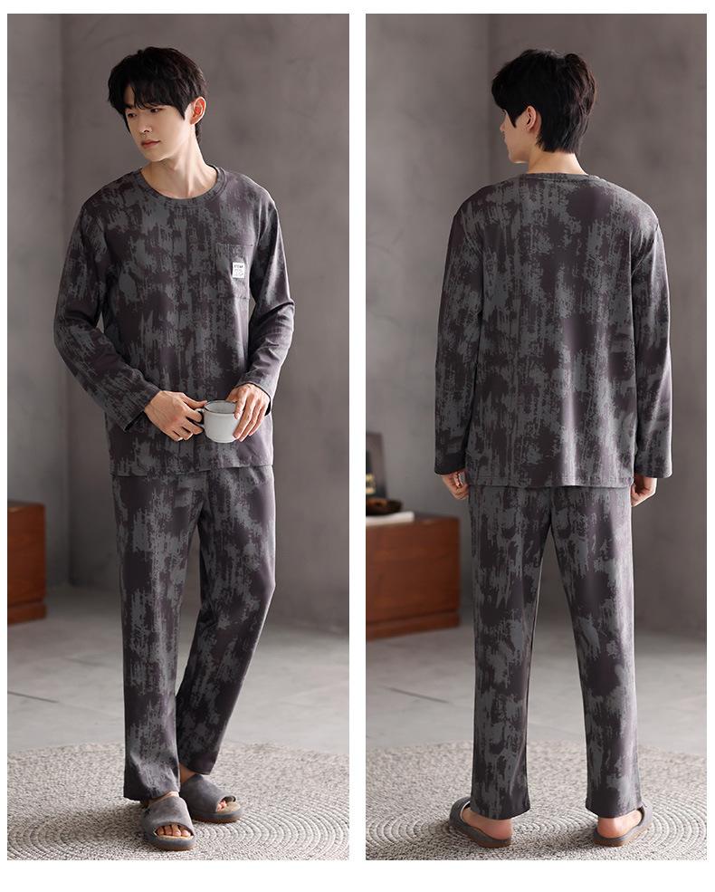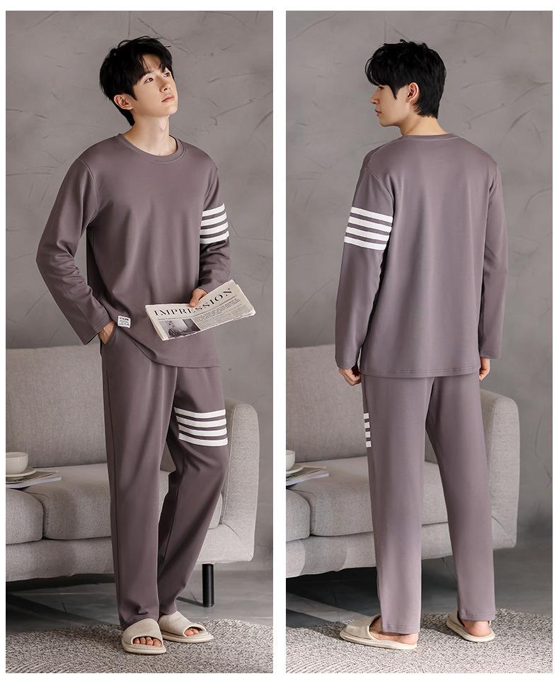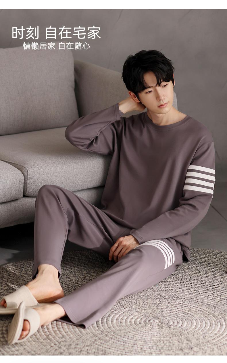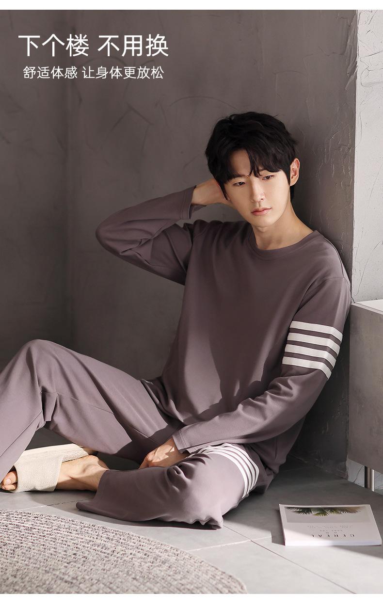 Compre 100% Pijamas de Algodão Puro Outono e Inverno Masculino Novo Terno de Calças de Manga Comprida Pullover High-end Juventude Roupas Masculinas para Casa no atacado no Joom.pro