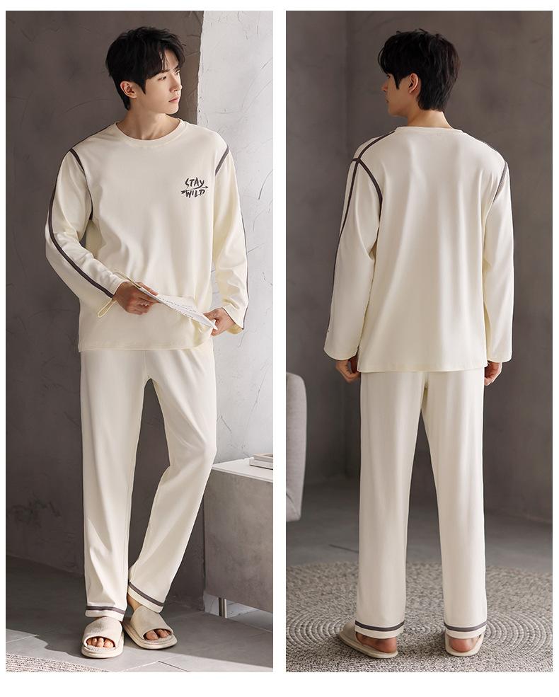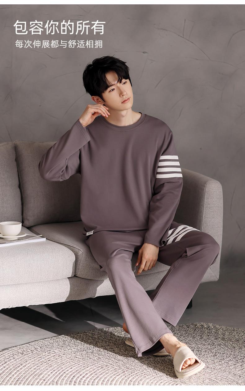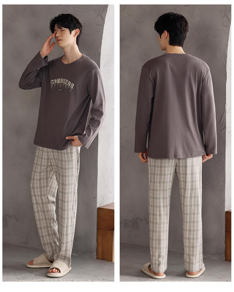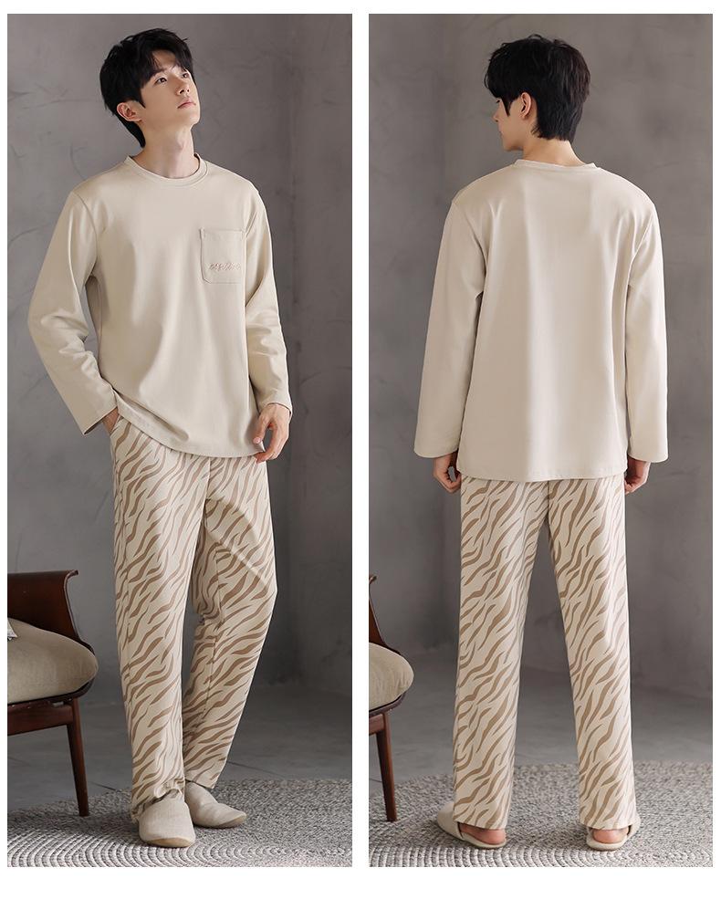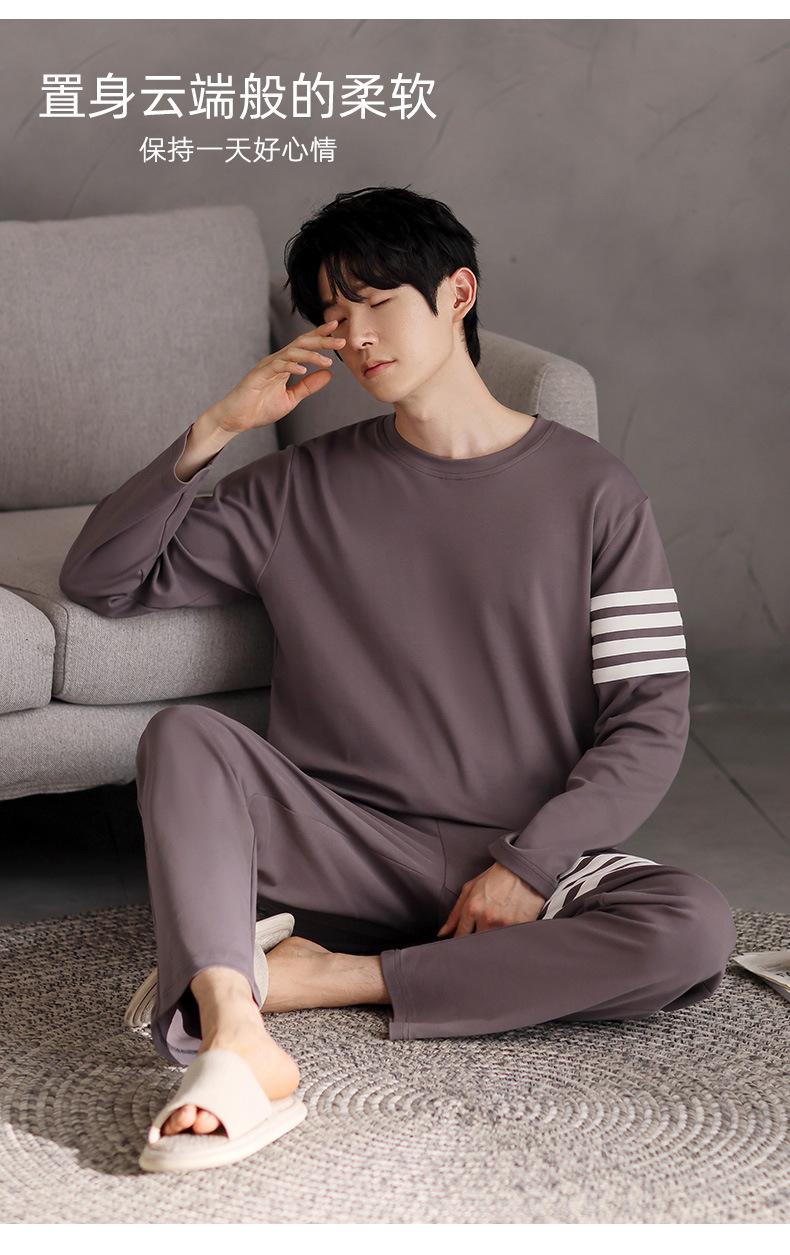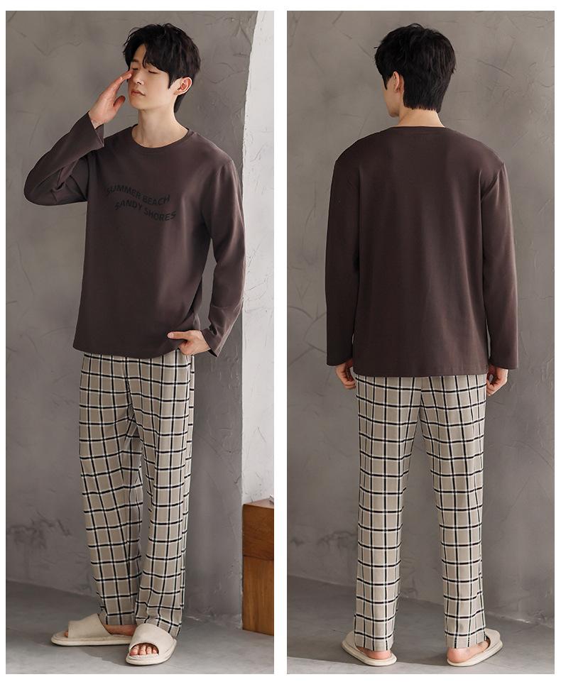Compre 100% Pijamas de Algodão Puro Outono e Inverno Masculino Novo Terno de Calças de Manga Comprida Pullover High-end Juventude Roupas Masculinas para Casa no atacado no Joom.pro