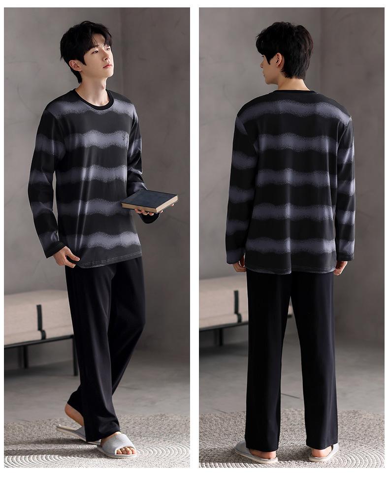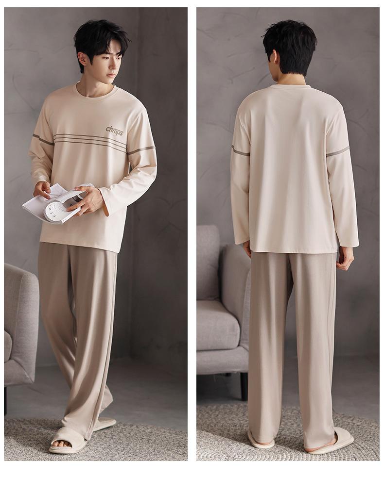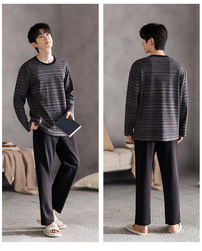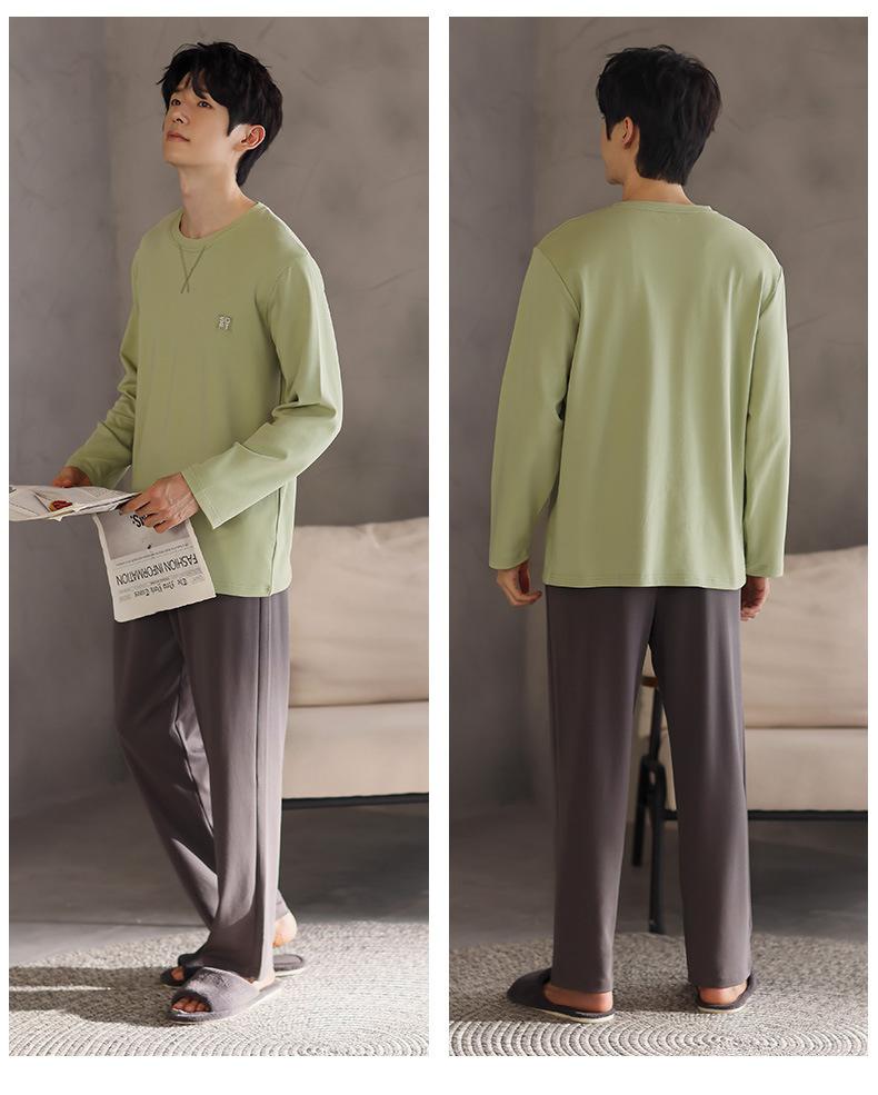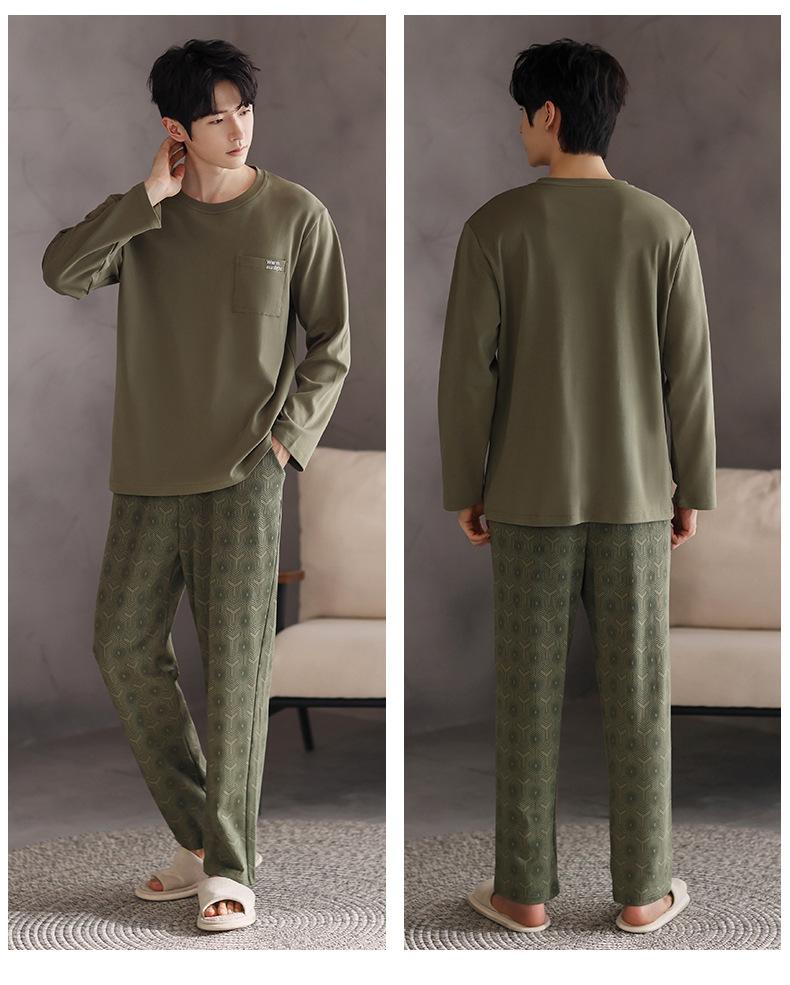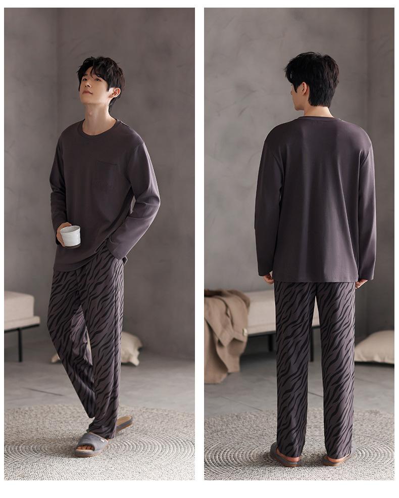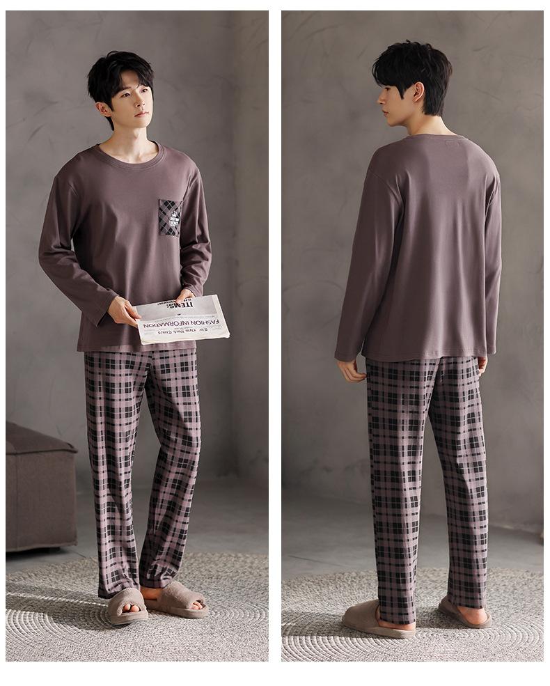 Compre 100% Pijamas de Algodão Puro Outono e Inverno Masculino Novo Terno de Calças de Manga Comprida Pullover High-end Juventude Roupas Masculinas para Casa no atacado no Joom.pro
