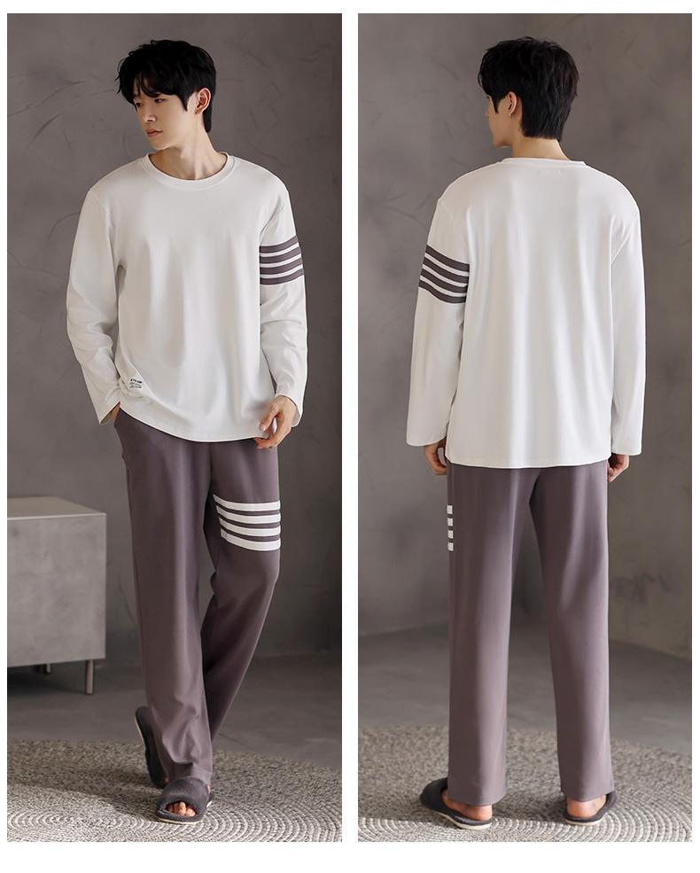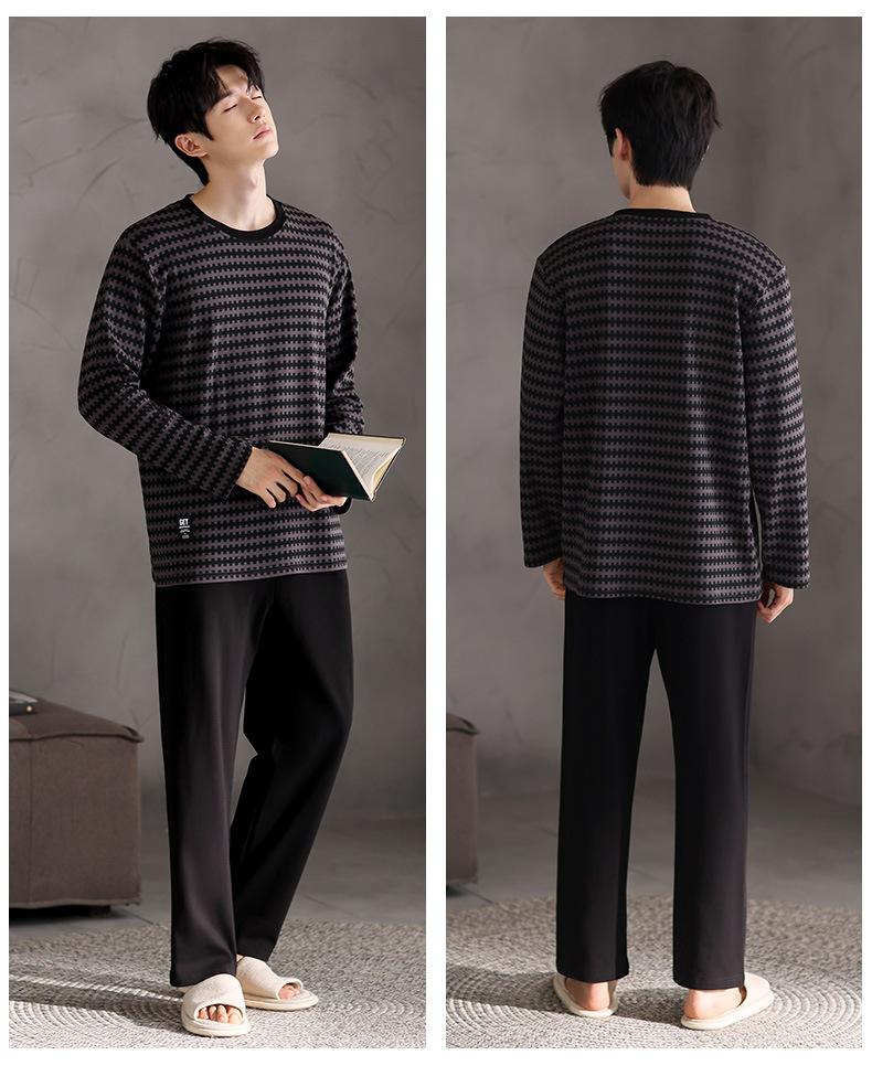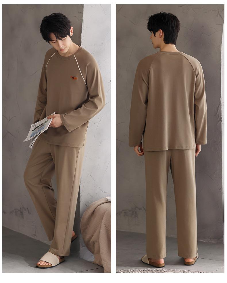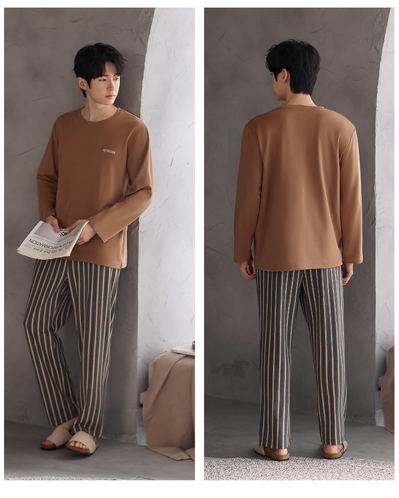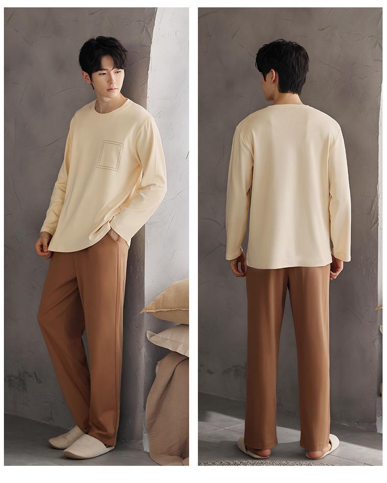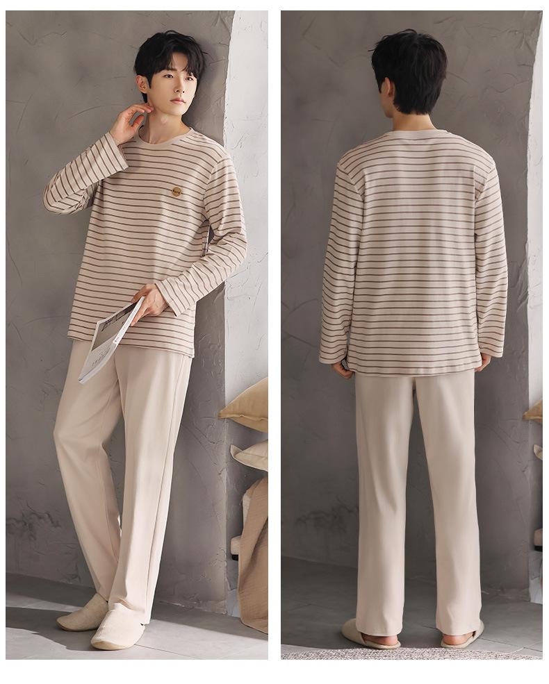 Compre 100% Pijamas de Algodão Puro Outono e Inverno Masculino Novo Terno de Calças de Manga Comprida Pullover High-end Juventude Roupas Masculinas para Casa no atacado no Joom.pro