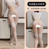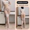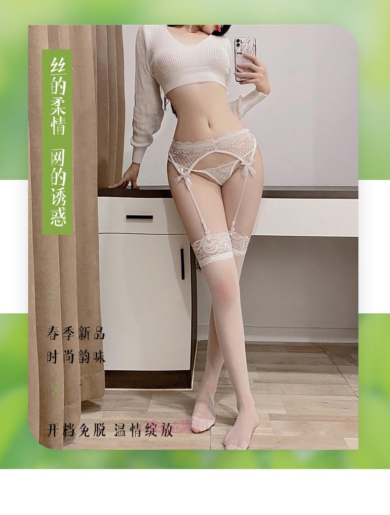 Conjunto de calcinhas lingerie sexy com laço de renda, meias-calças e virilha aberta, calcinhas fio dental sexy europeias e americanas 9904