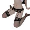 Lace tanga lingerie sexy lingerie suspender meias terno open- end meias preto bonito sexy tanga underwear