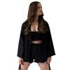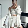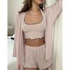 2024 Europeu e americano outono novo solto malha confortável manga comprida roupa interior shorts pijamas três peças cross-border casa roupas