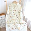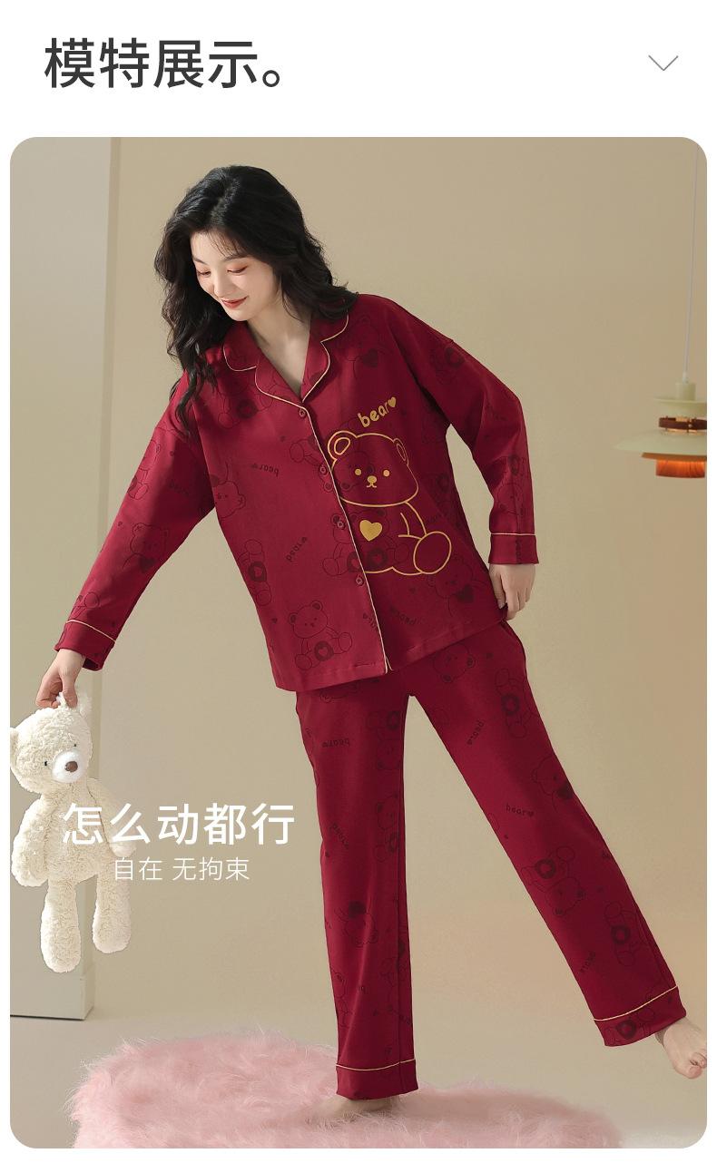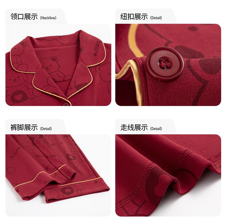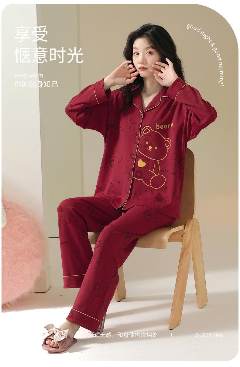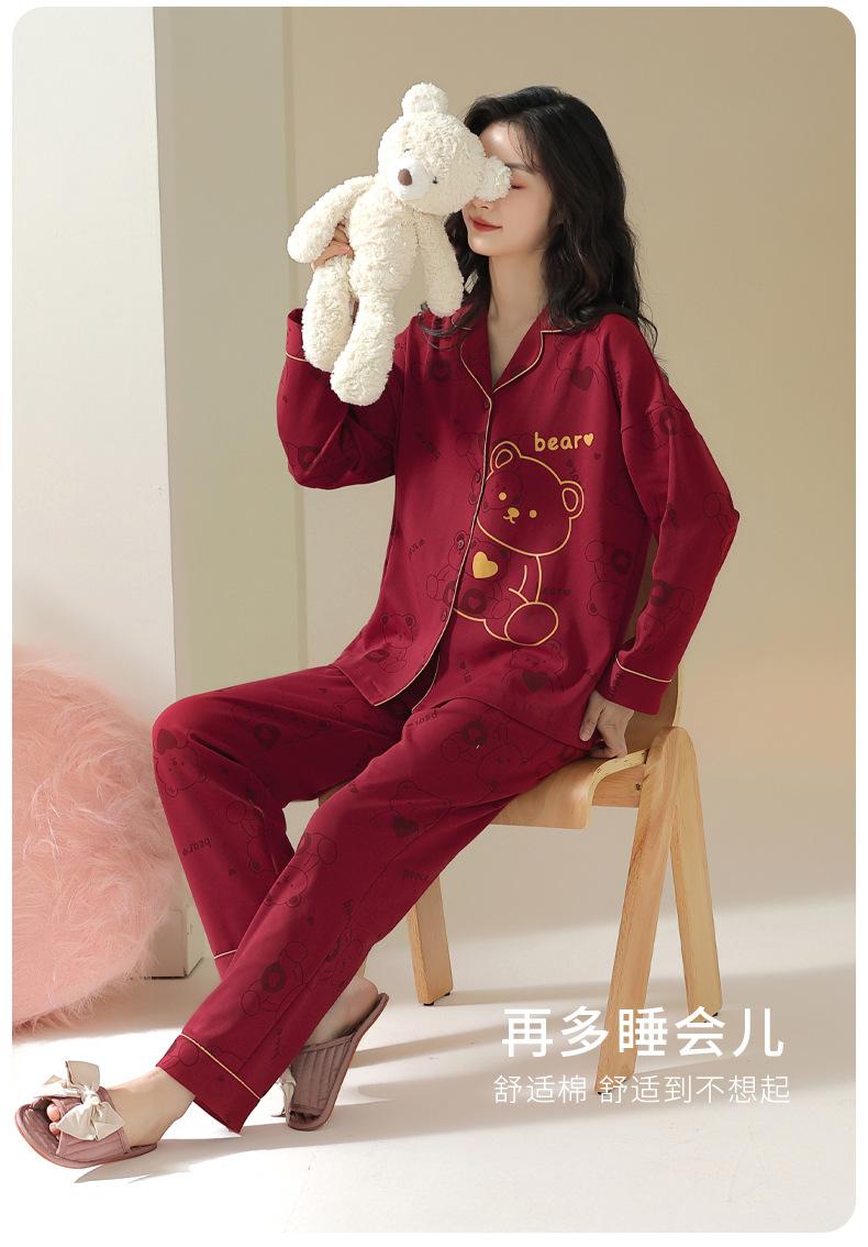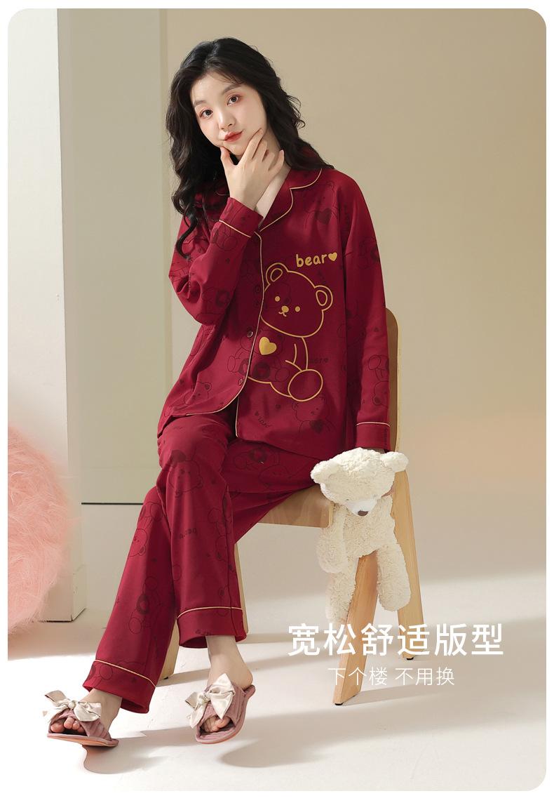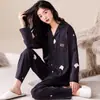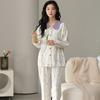 Pijama Feminino Outono Cardigan Lapela Bonito Algodão Calças de Manga Comprida Pode Sair Estilo Simples Roupas de Casa terno Casual