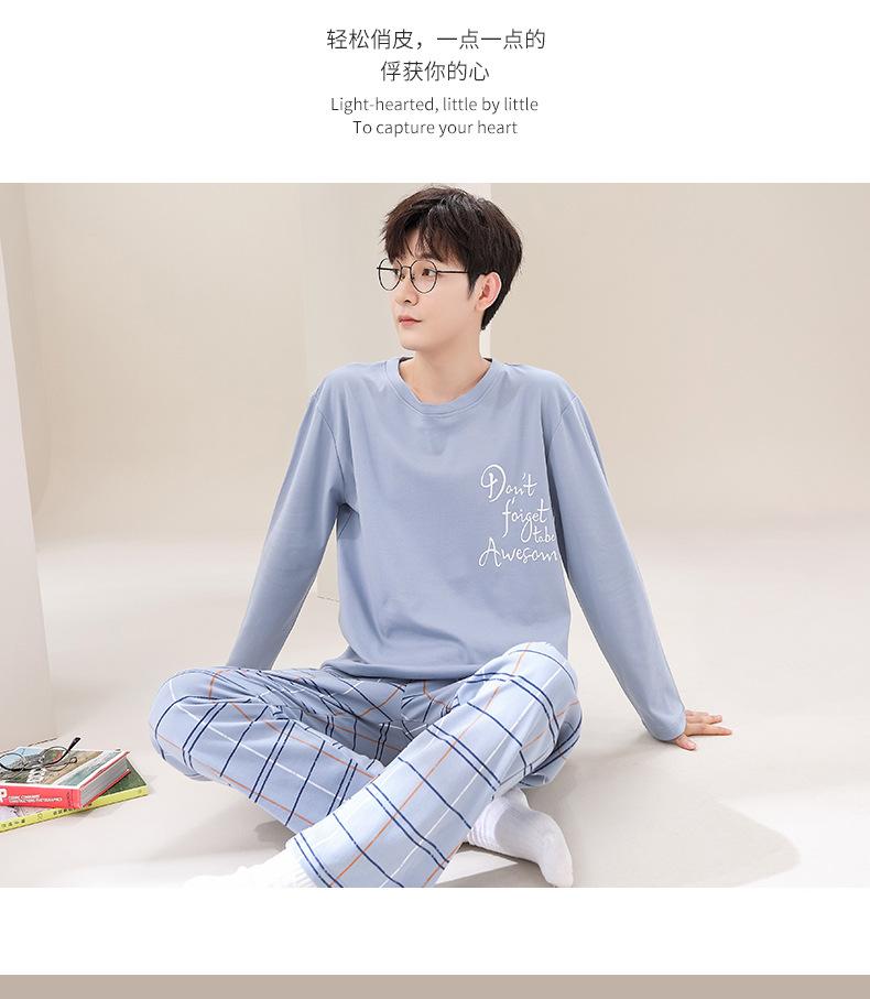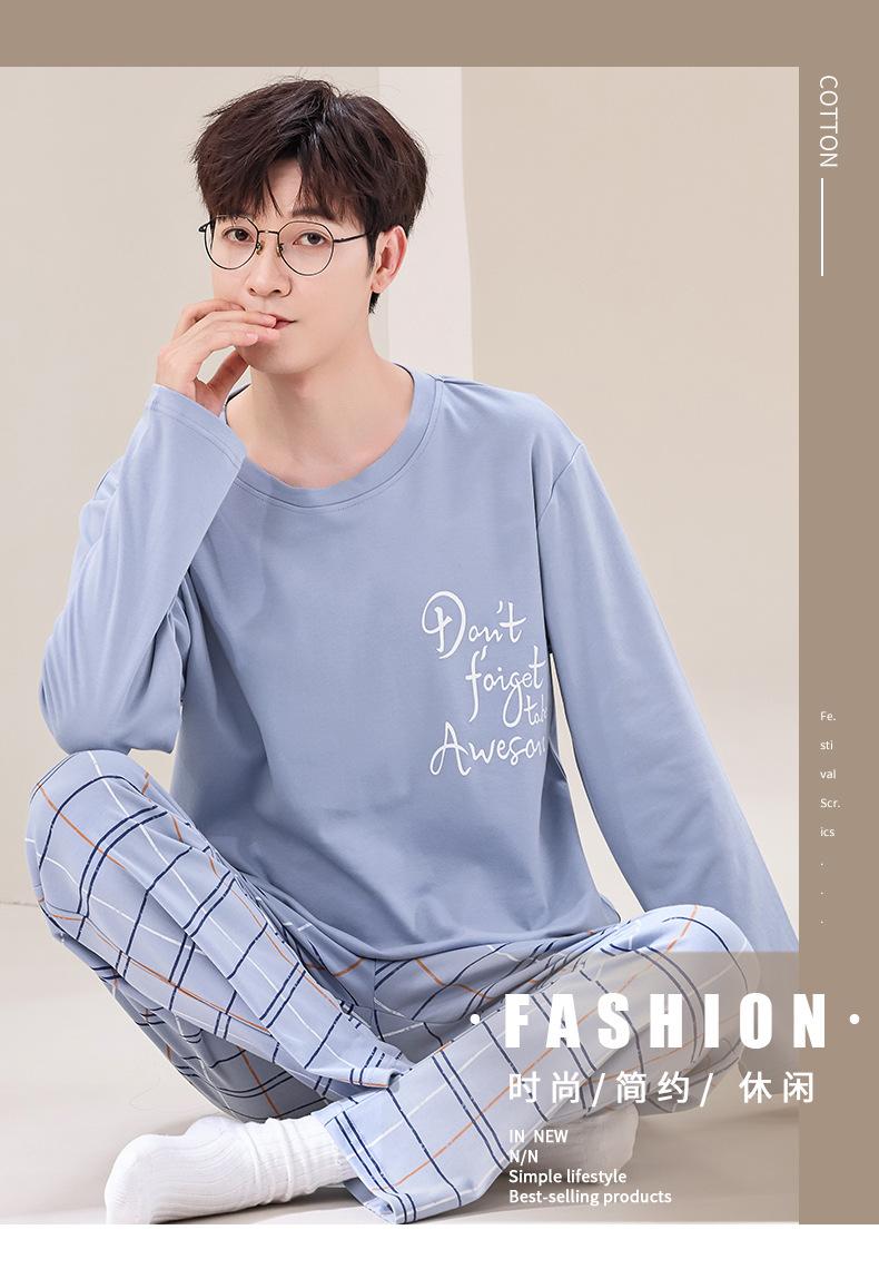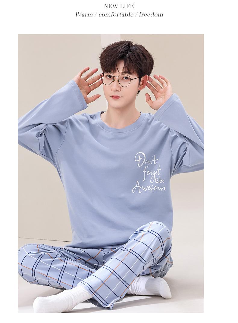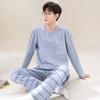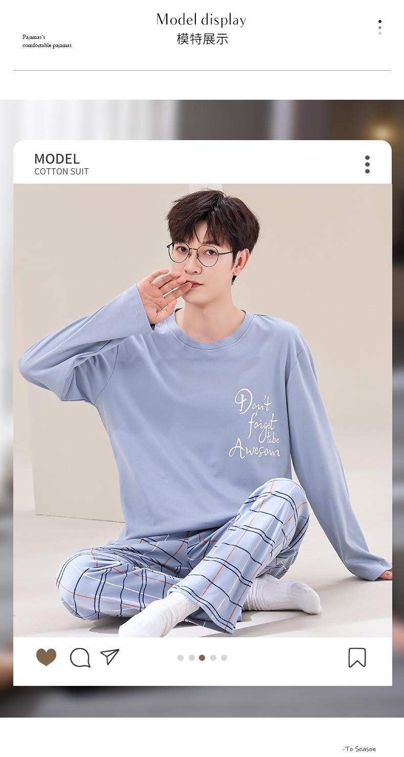 Pijama de Algodão de manga comprida Terno Masculino Primavera Roupas para casa Algodão Jovem Algodão Algodão Engrossado Pullover Primavera e Outono Live