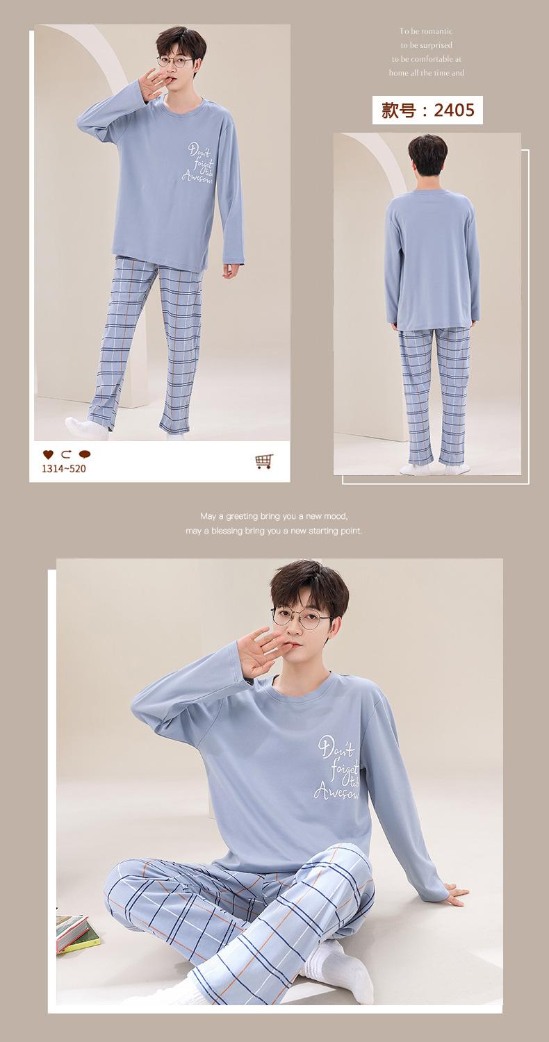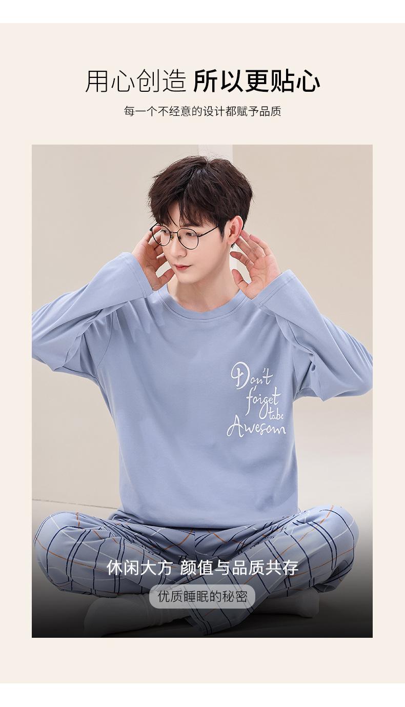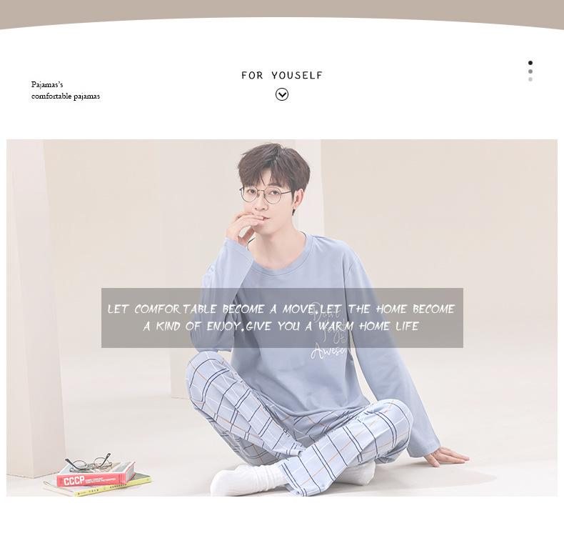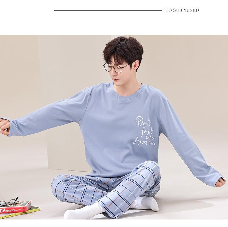Pijama de Algodão de manga comprida Terno Masculino Primavera Roupas para casa Algodão Jovem Algodão Algodão Engrossado Pullover Primavera e Outono Live