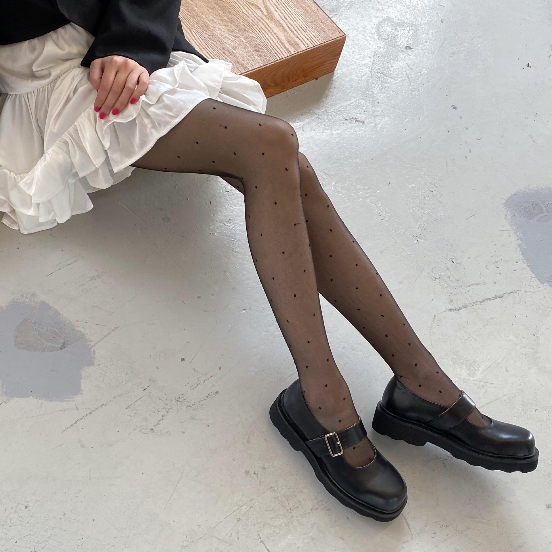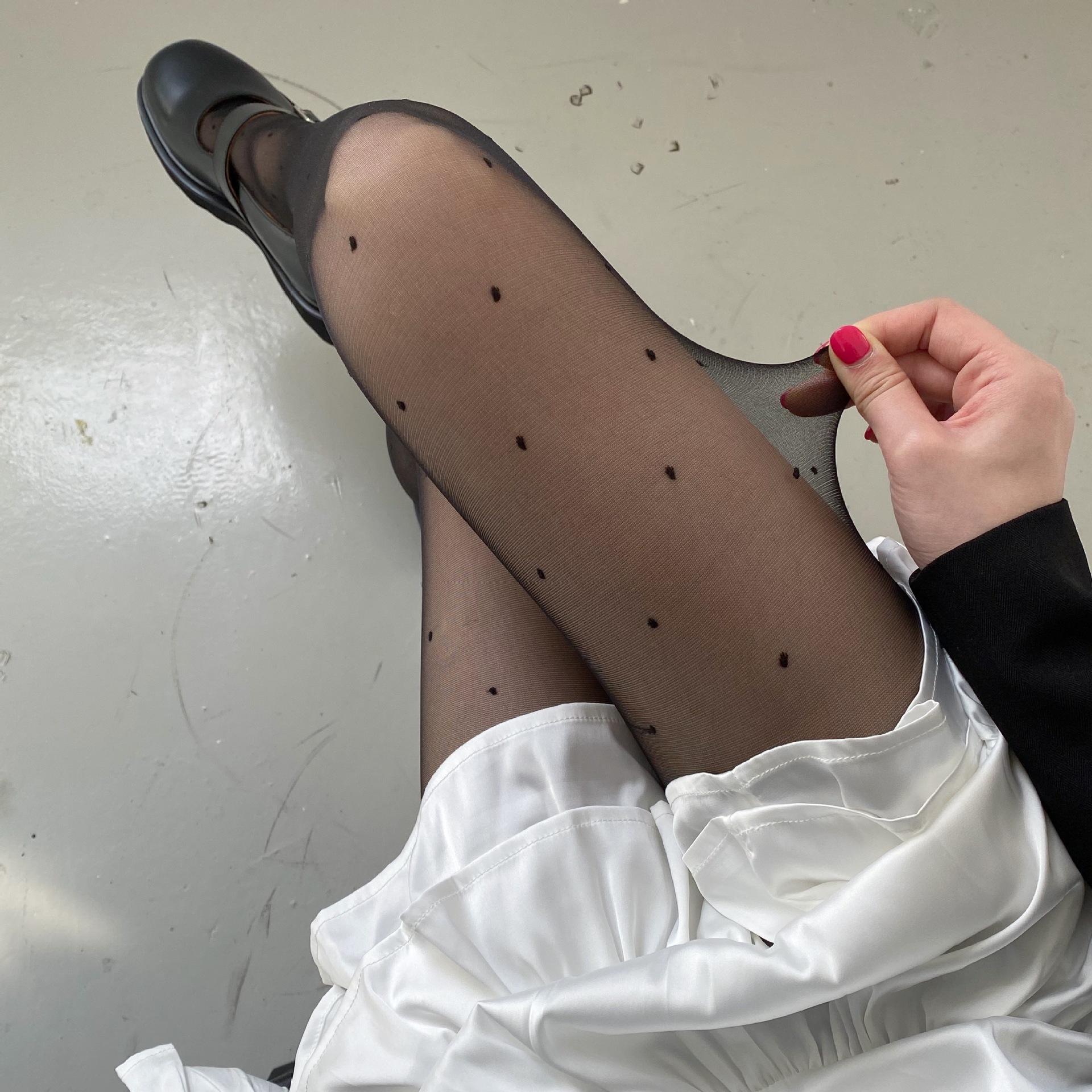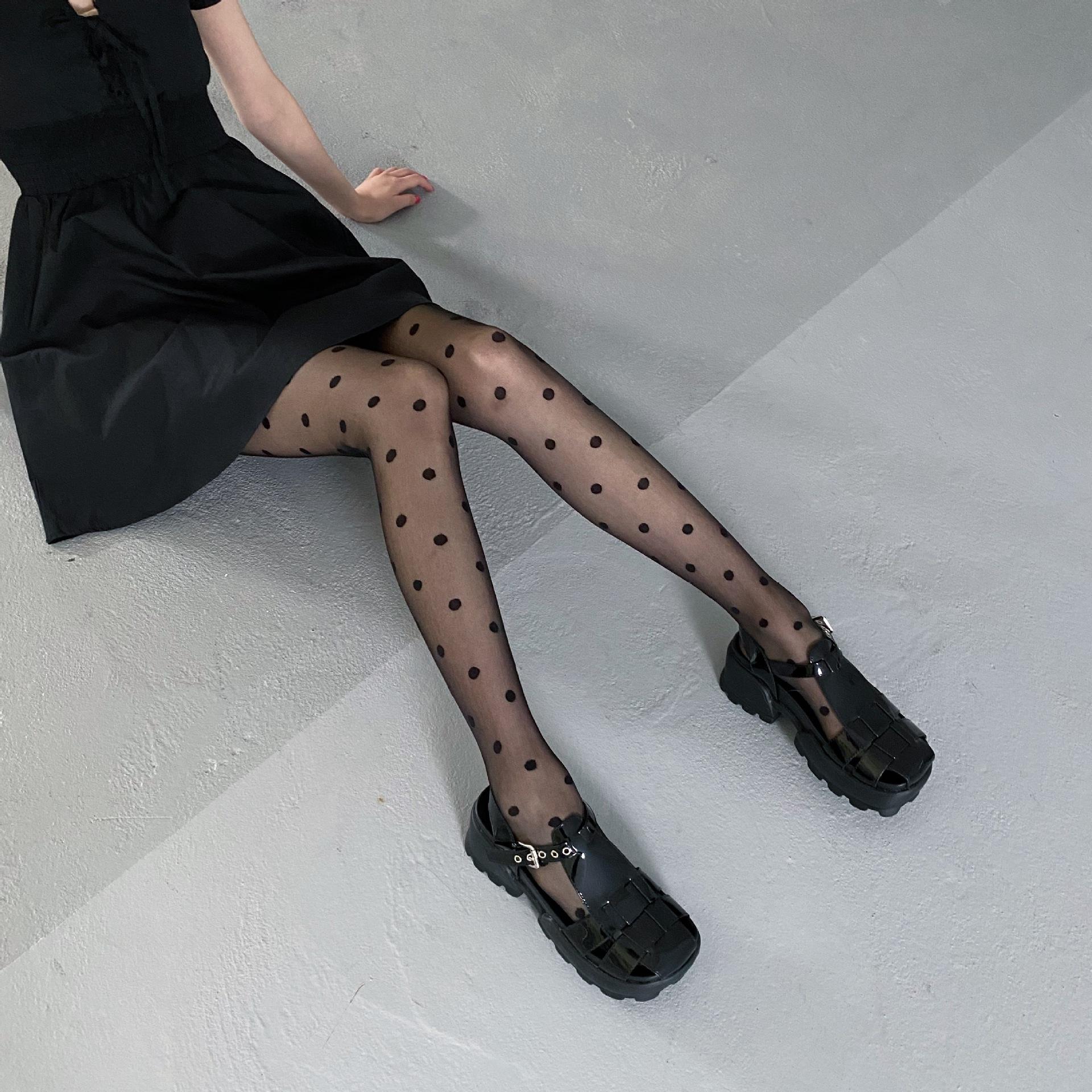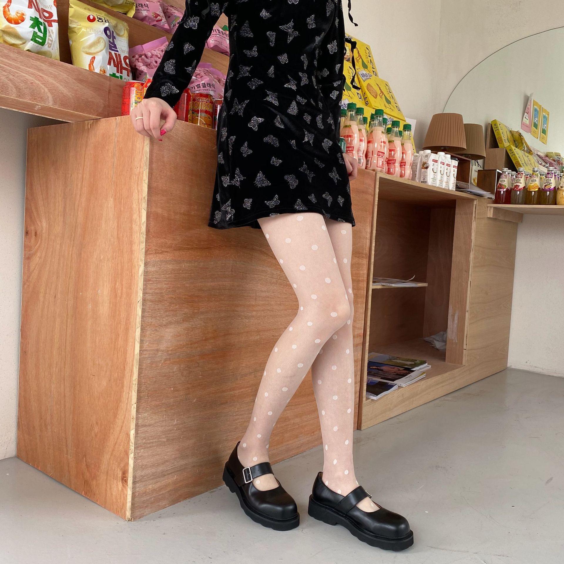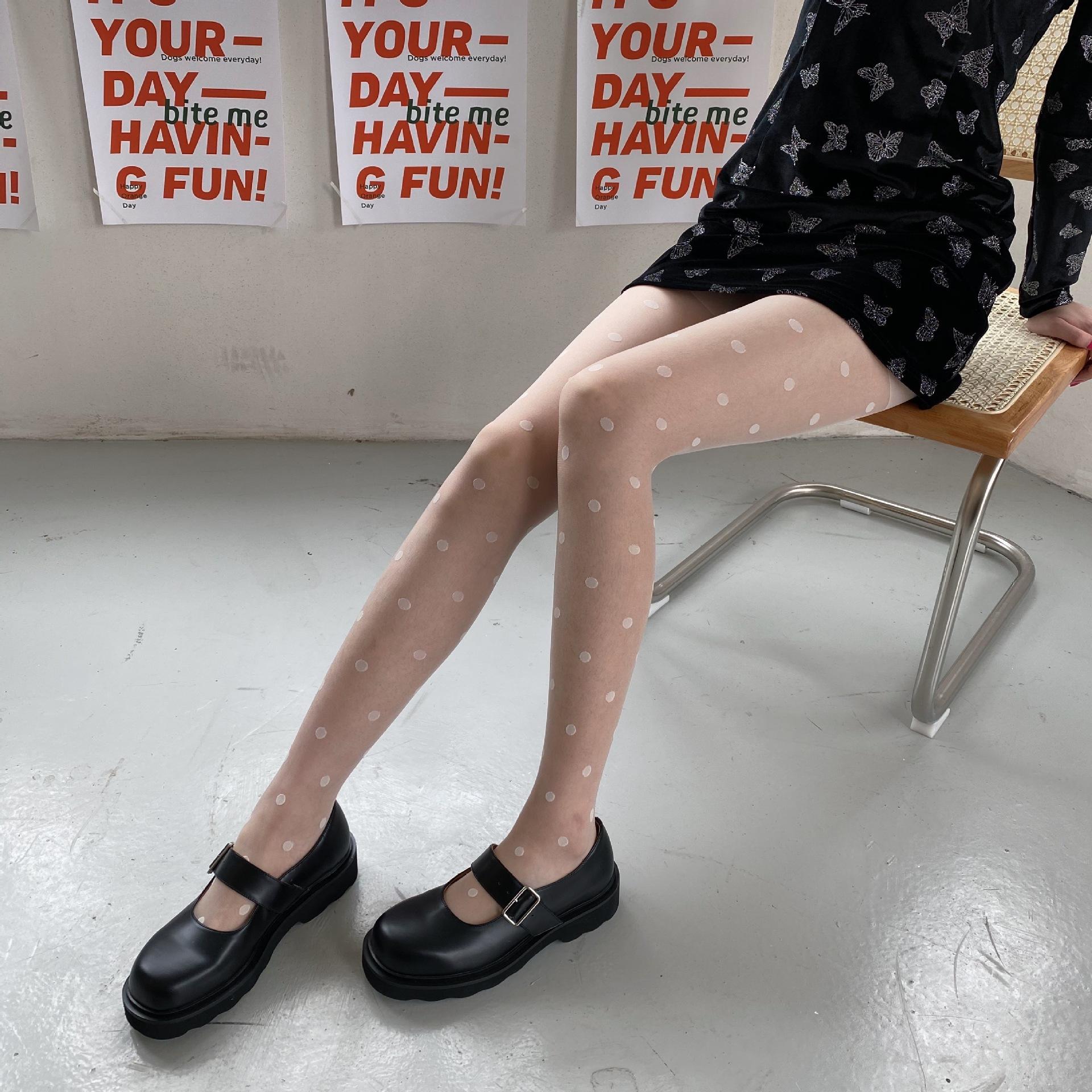 PATTKIN Meias de Seda Brancas Spice Girls Escuras Jacquard de Bolinhas Meias-calças ins Meias Femininas Doces e da Moda jk