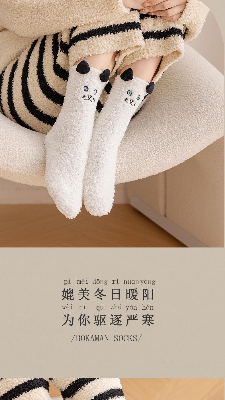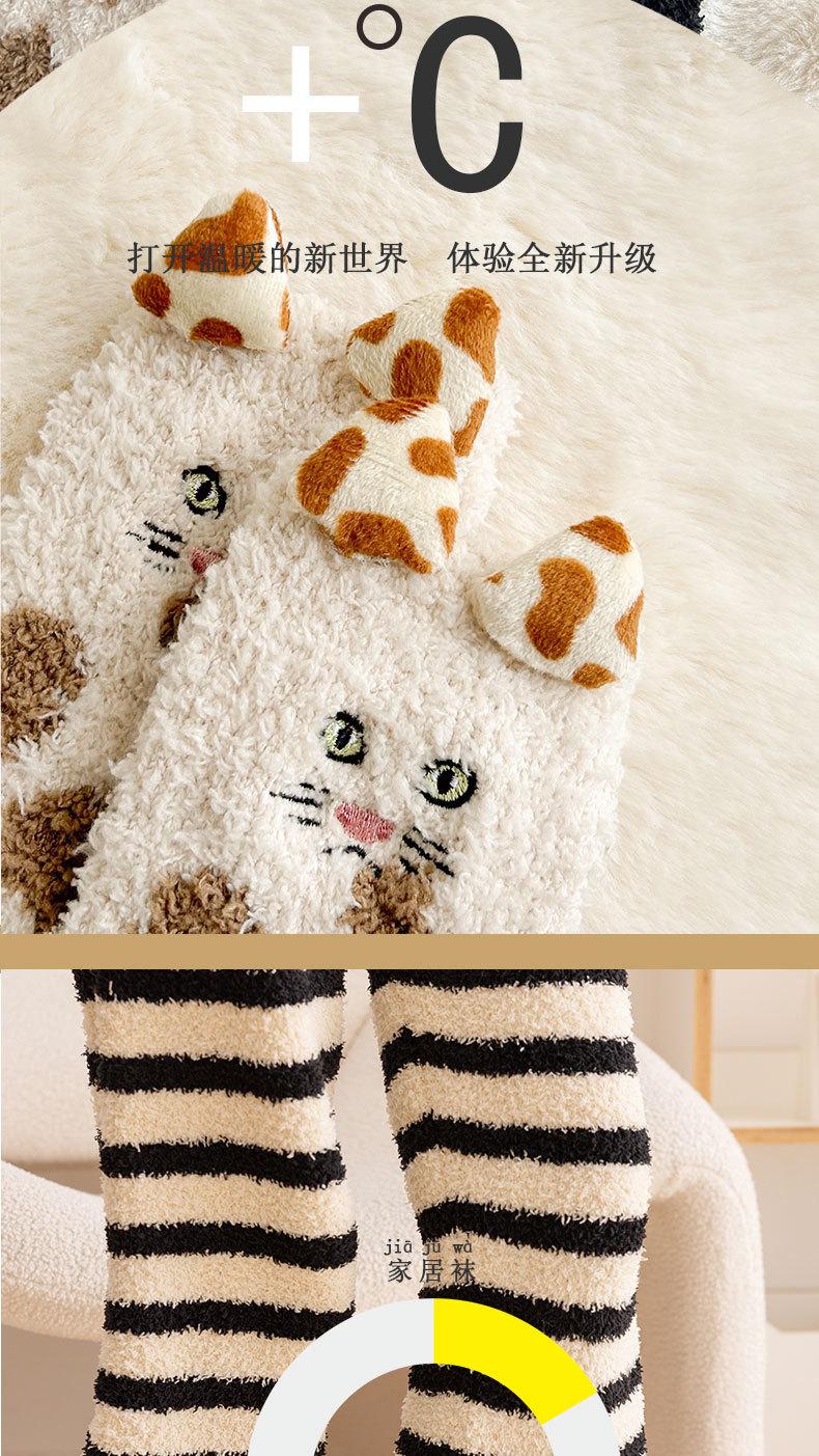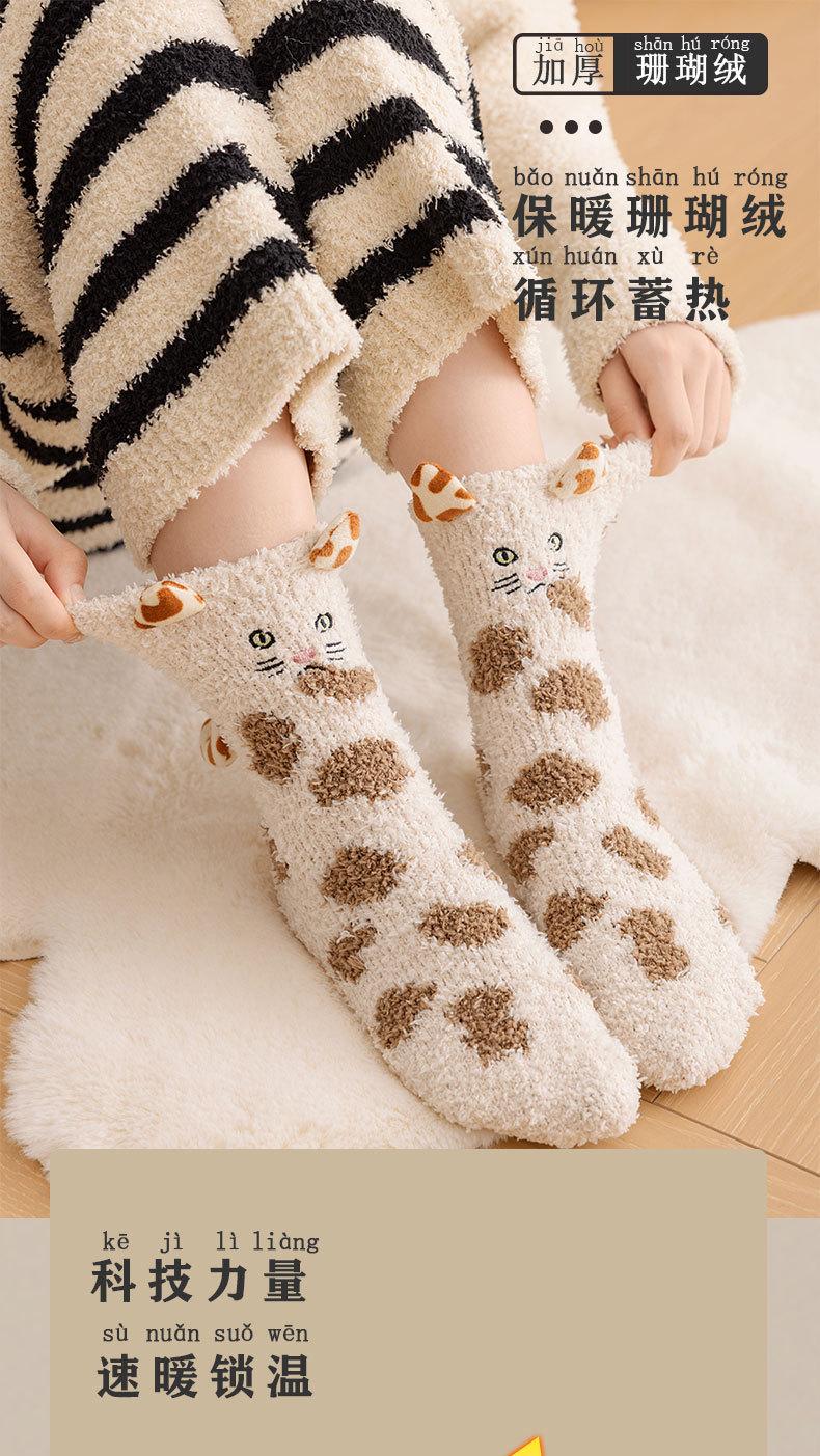 Meias grossas de outono e inverno Meias femininas antibacterianas de lã coral quente Meias femininas Meias femininas Meias de chão de senhora de gato fofas Meias de dormir