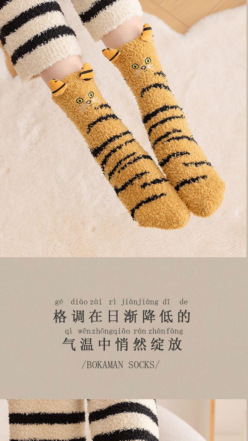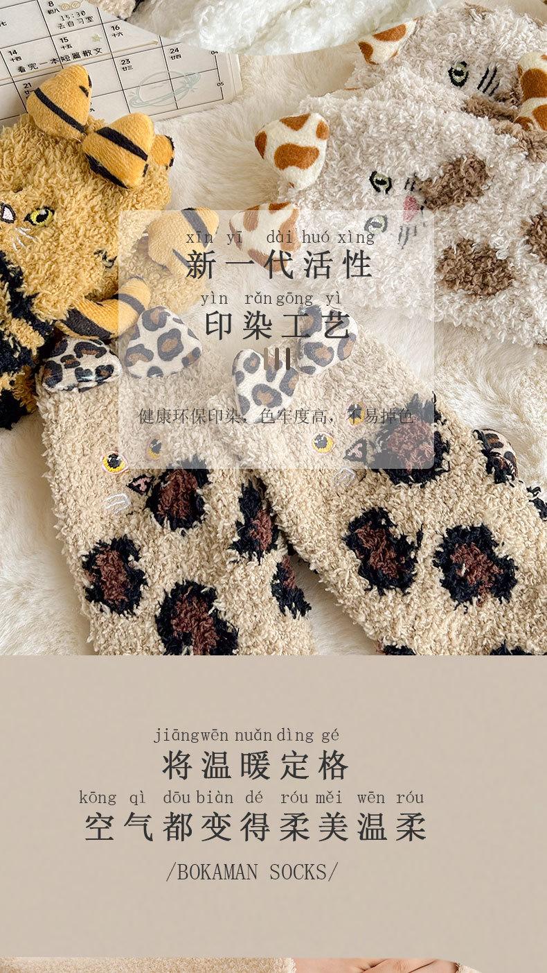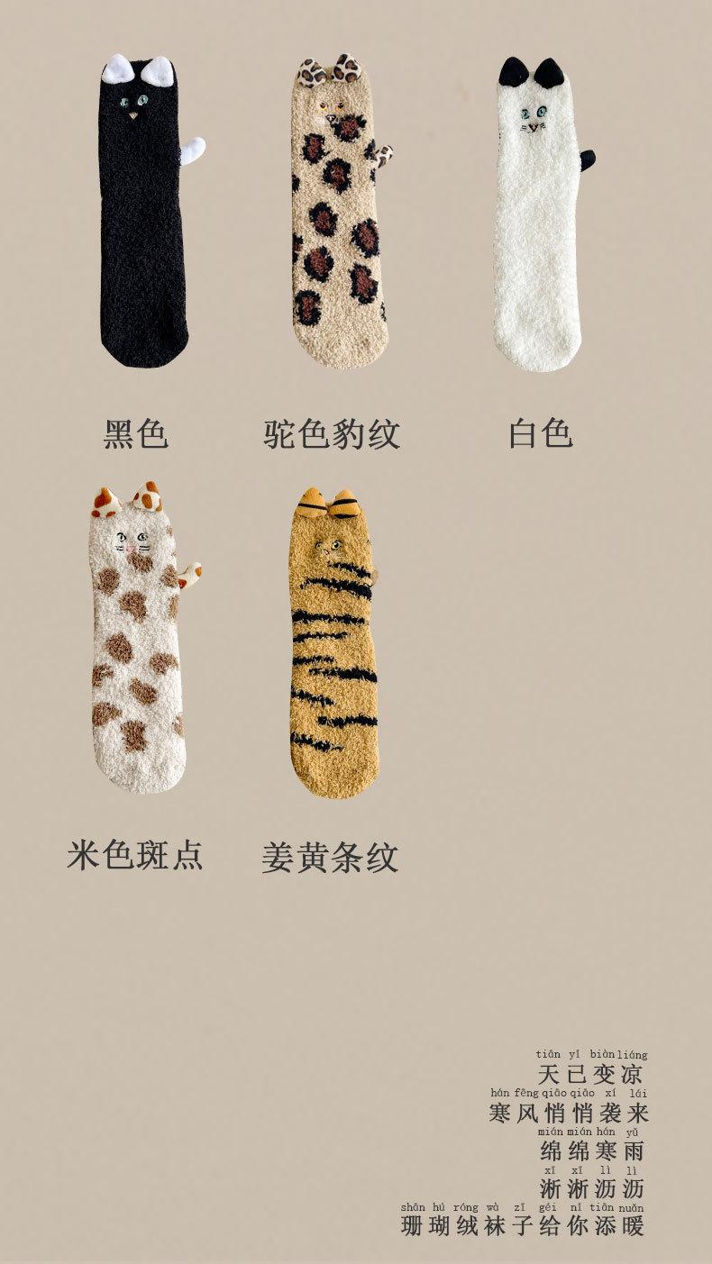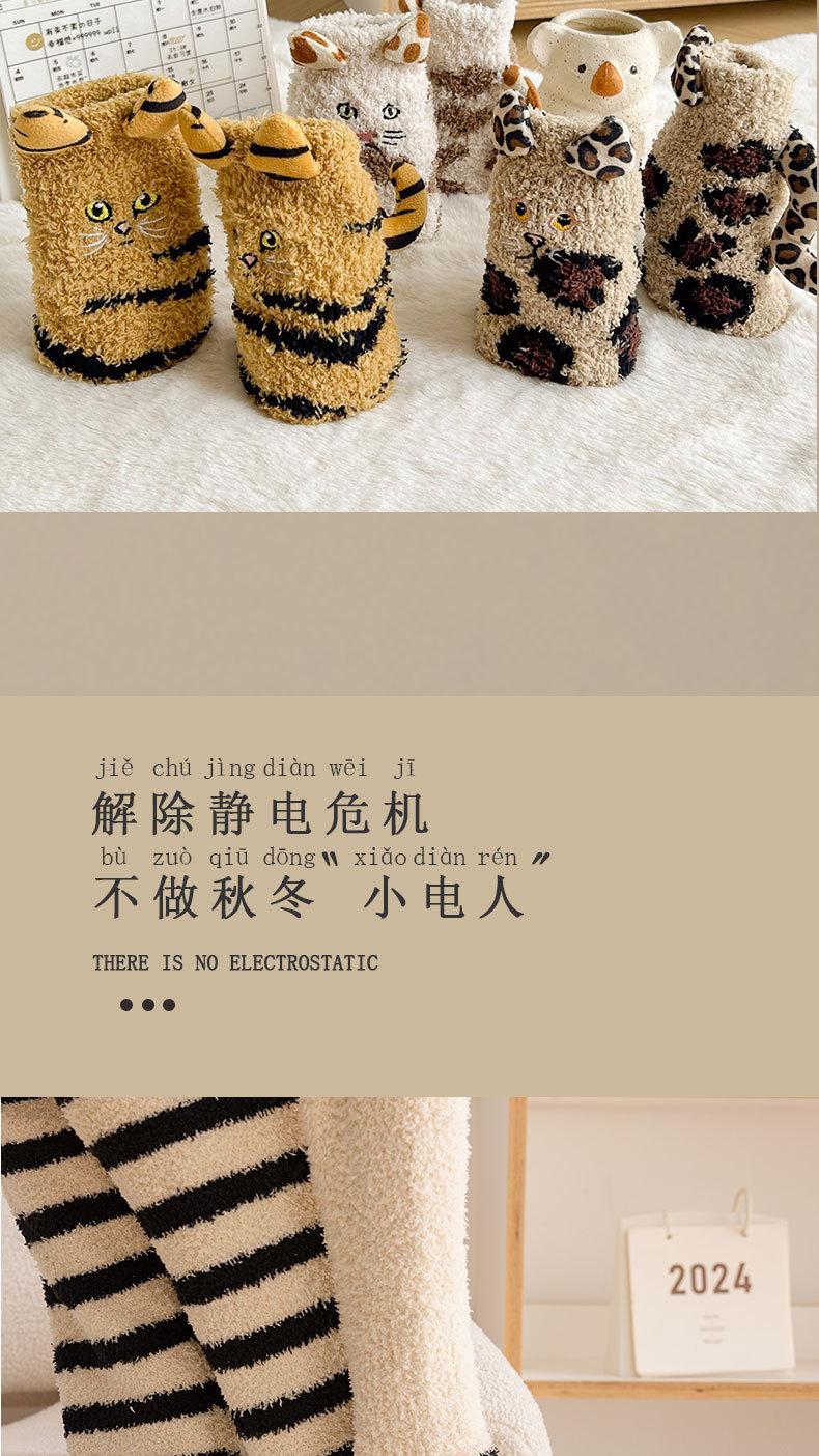 Meias grossas de outono e inverno Meias femininas antibacterianas de lã coral quente Meias femininas Meias femininas Meias de chão de senhora de gato fofas Meias de dormir