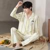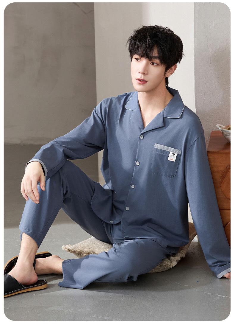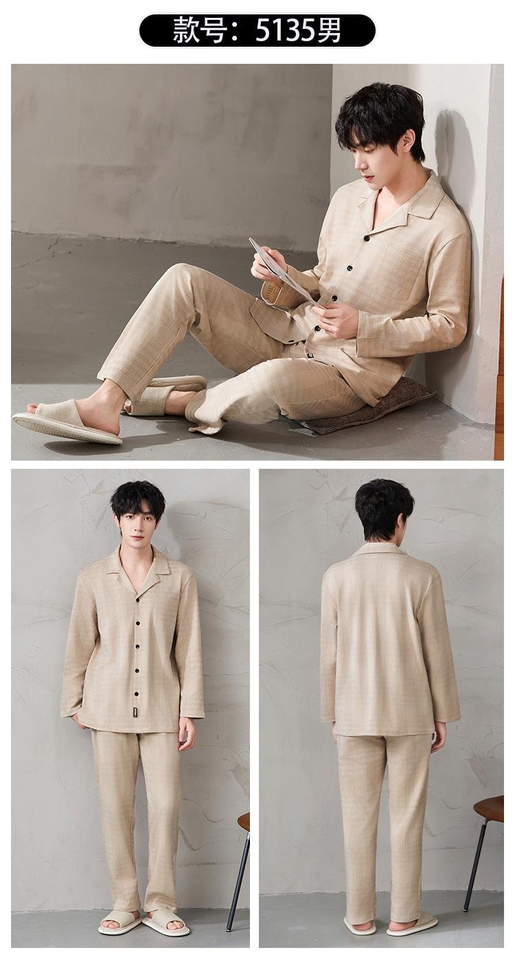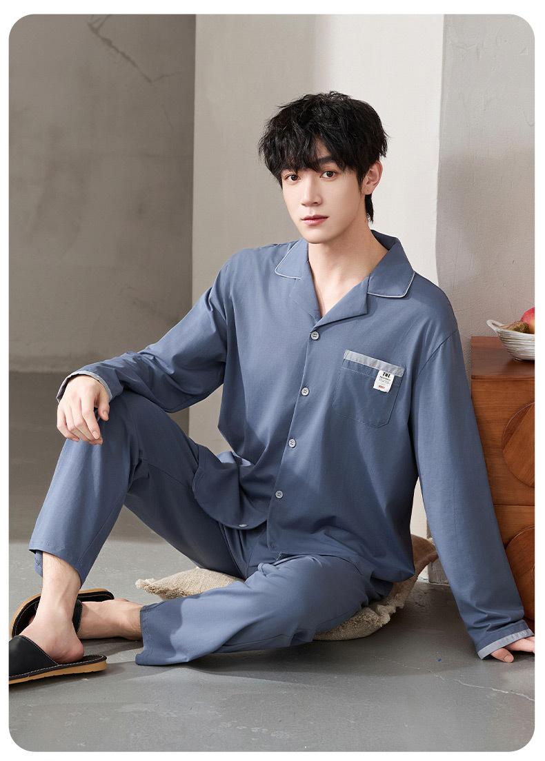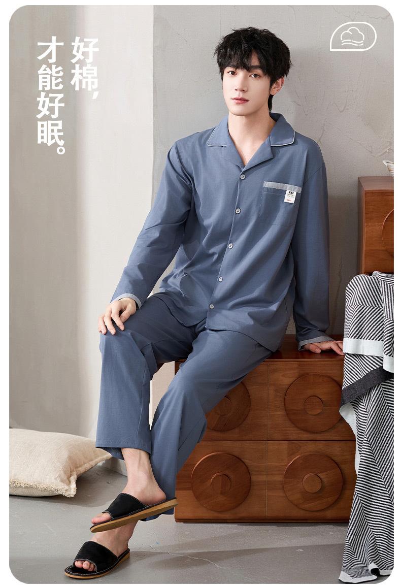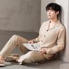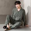 Pijamas masculinos primavera e outono algodão puro manga comprida masculino outono algodão puro fino cardigan masculino plus size outono e inverno roupas para casa