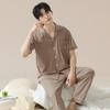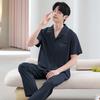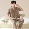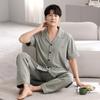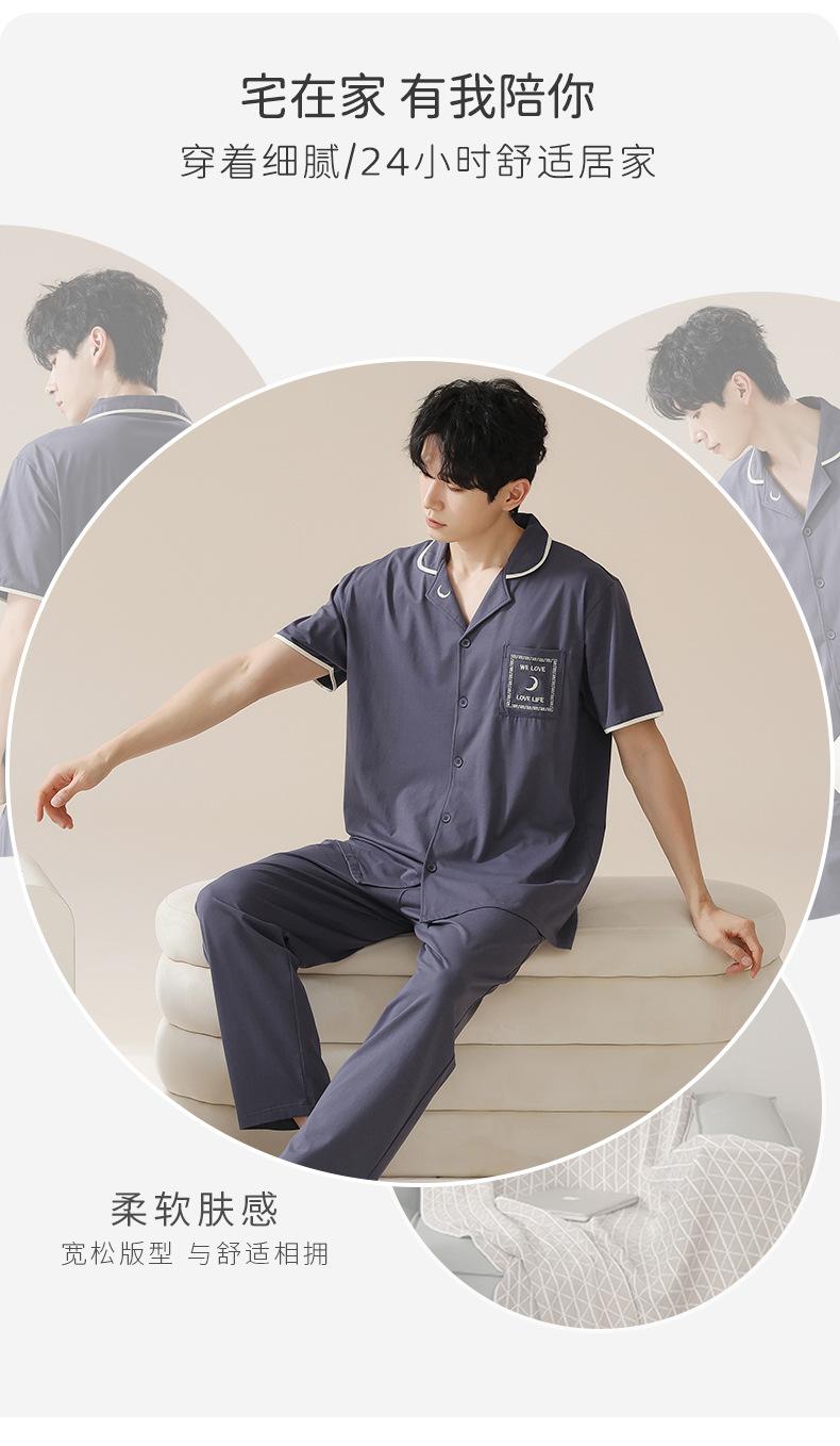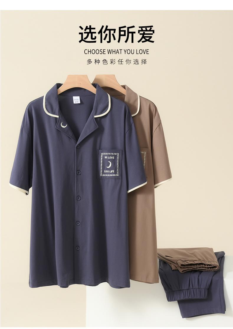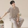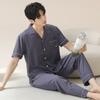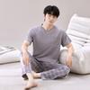 2025 Novo Verão Calças de Manga Curta Puxar Algodão Solto Pijama Masculino Fino Tamanho Grande Terno Casual Roupa de Casa