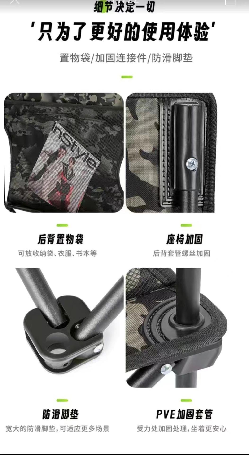 Cadeira Dobrável para Exterior Portátil Camping Reclinável de Encosto Alto Pesca Desenho Praia Cadeira de Armazenamento Conveniente