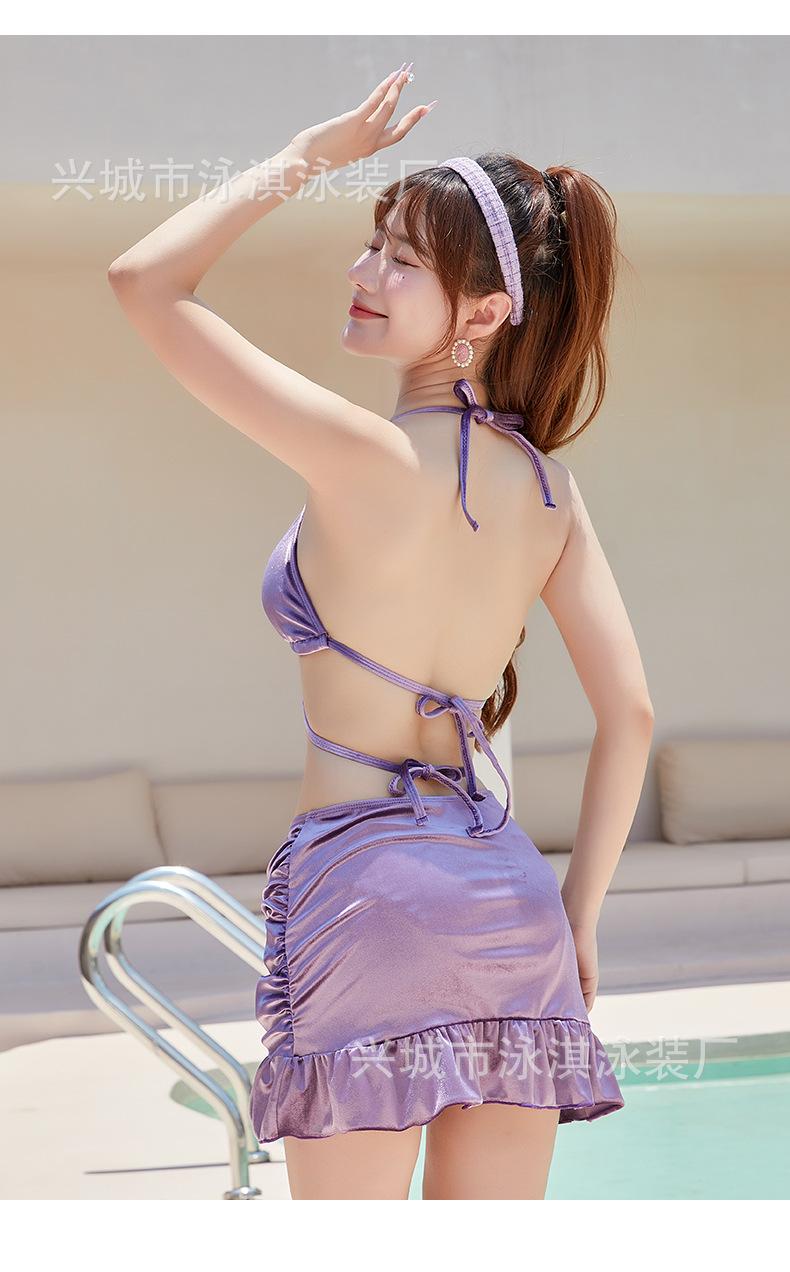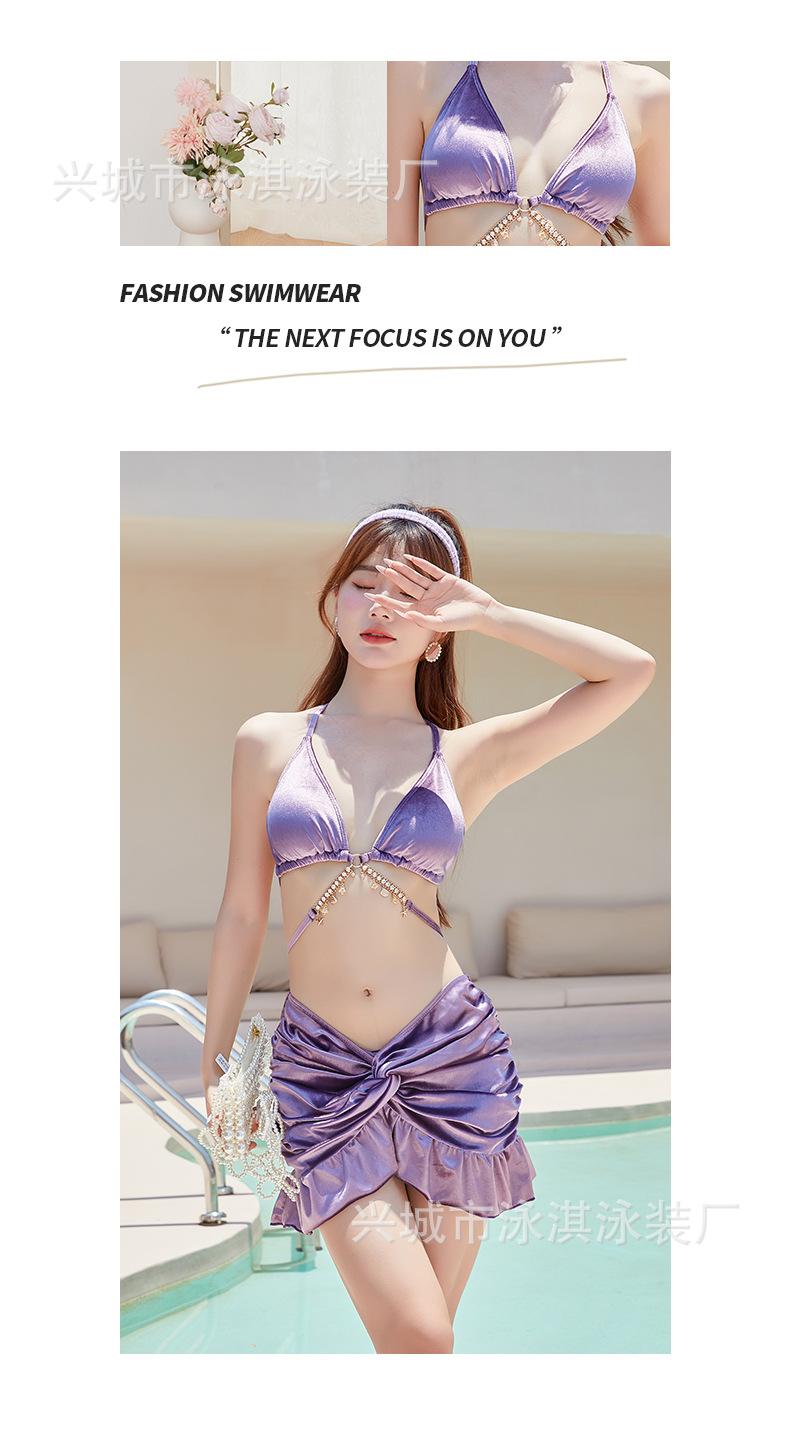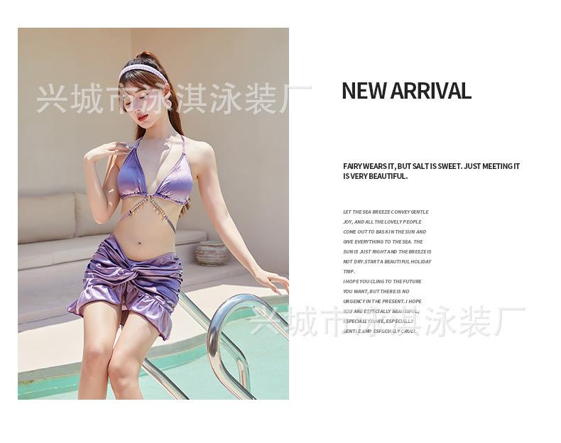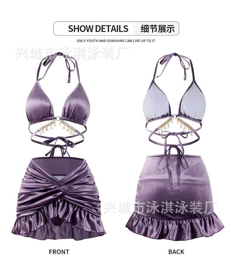 Conjunto de Três Peças Simples de Diamante de Alta Qualidade para Garota Quente Sexy Sem Costas Saia Conservadora com Fenda Maiô Biquíni Feminino