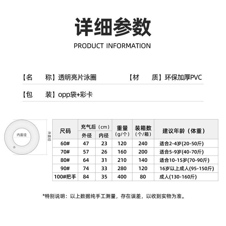 Cross-border quente novo adulto transparente lantejoulas anel de natação ins vento lantejoulas infláveis anel de natação atacado