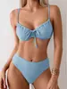 Trajes de Banho Europeus e Americanos Transfronteiriços Trajes de Banho Comércio Exterior Cor Sólida Amazon Dividido Biquíni Sexy Termas Roupa de Banho Feminina
