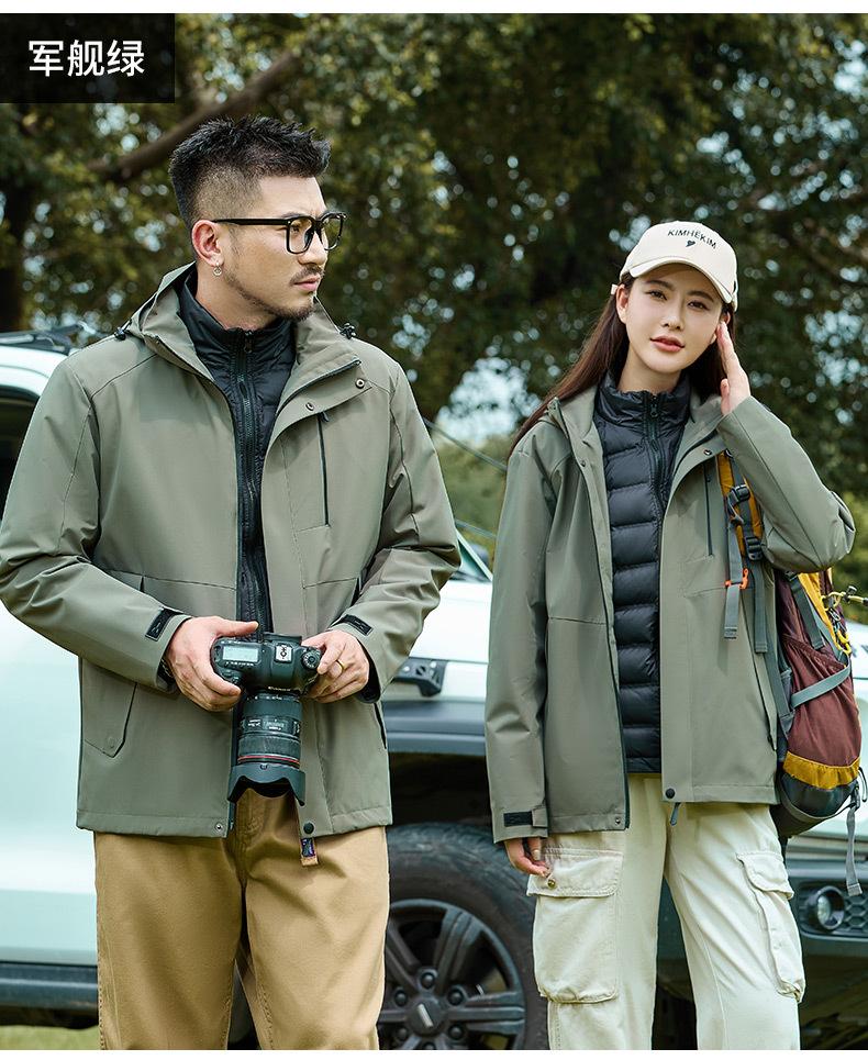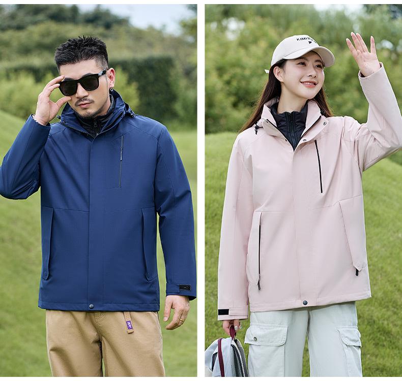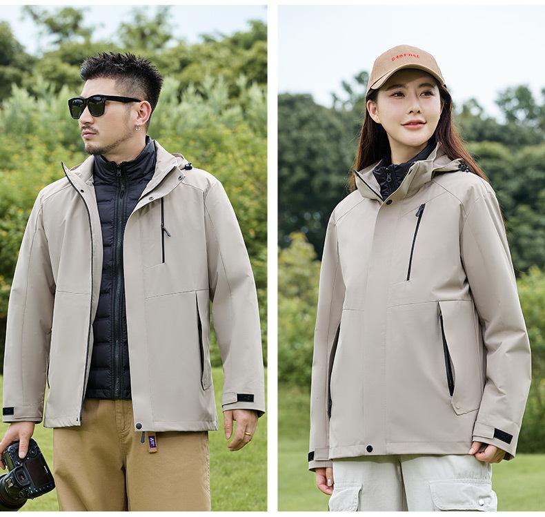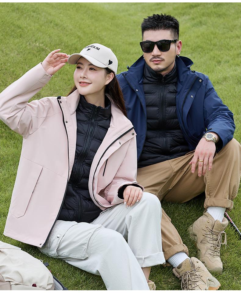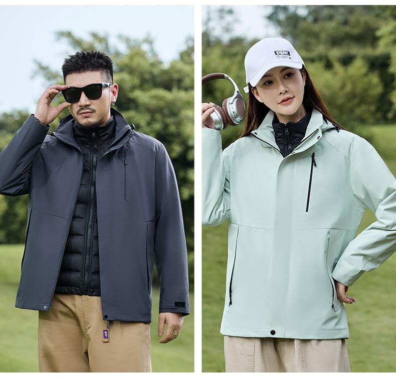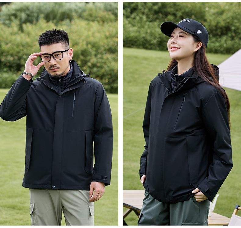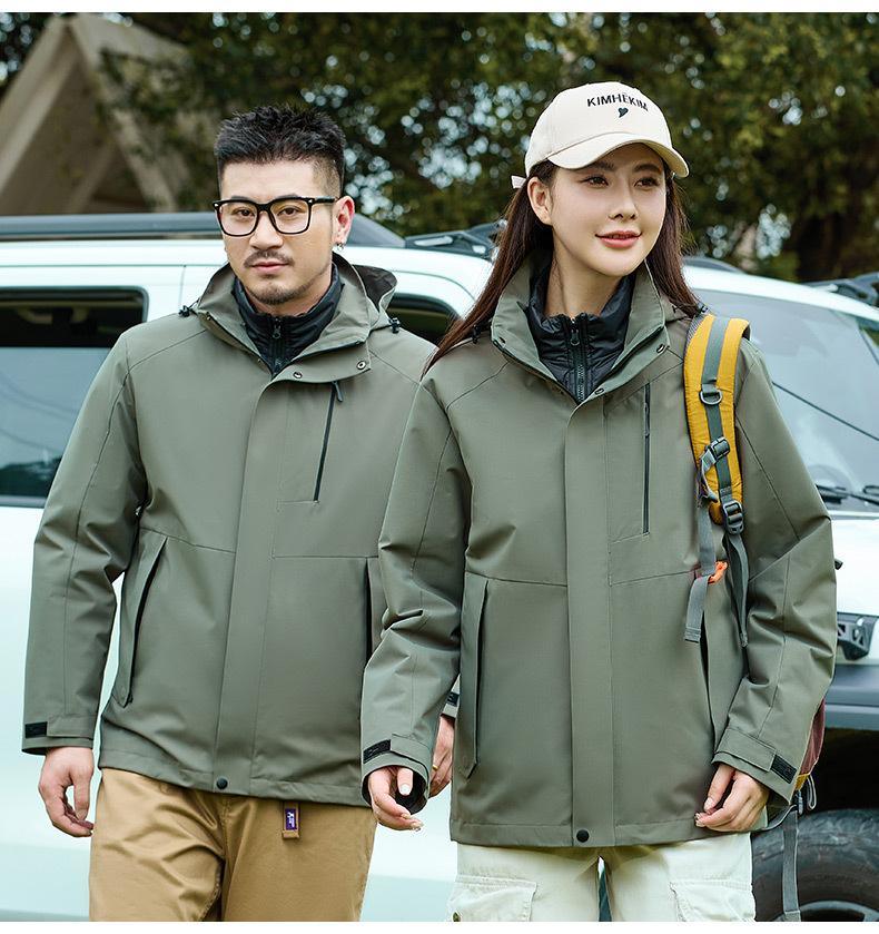 Jaqueta três em um dos homens outono e inverno à prova de vento quente destacável de duas peças das mulheres ao ar livre esqui montanhismo terno maré