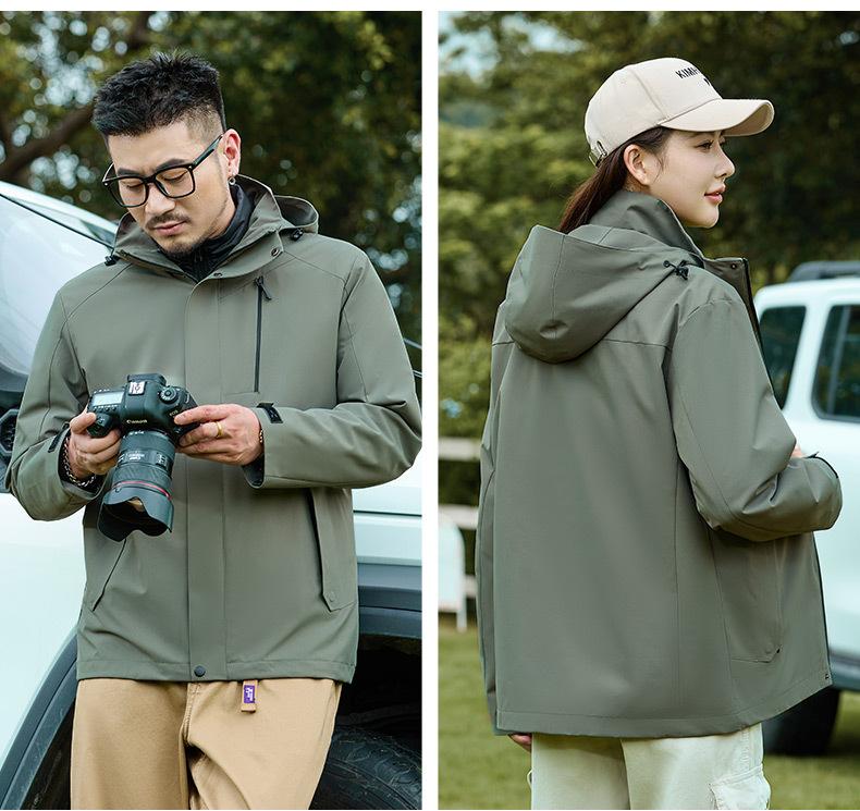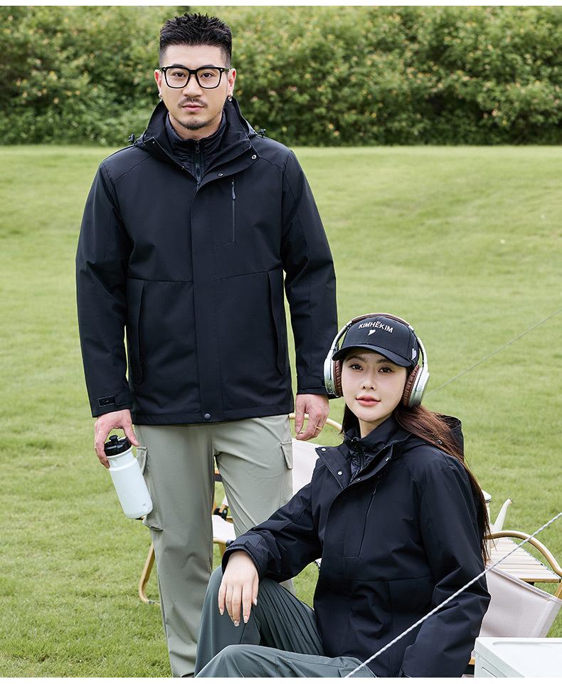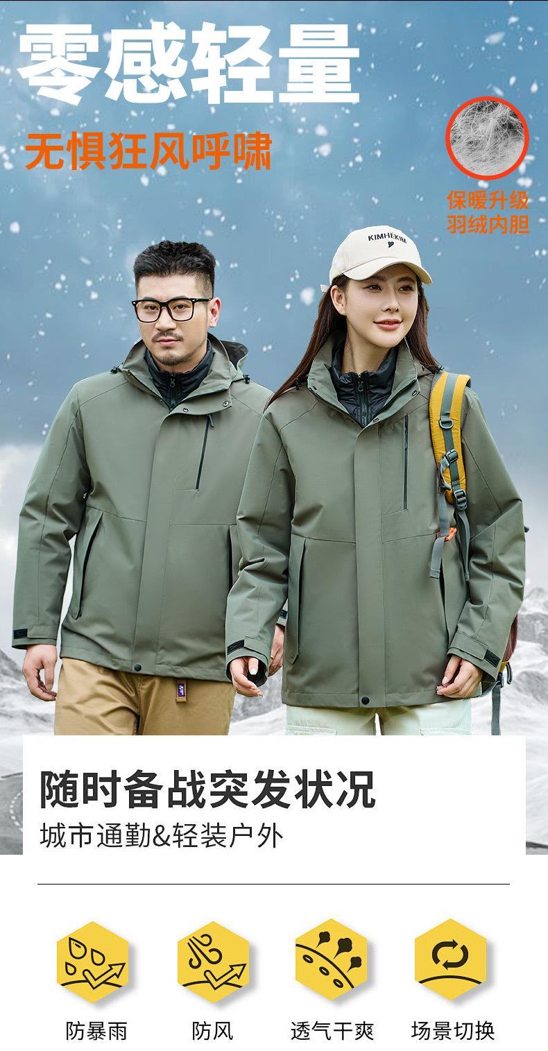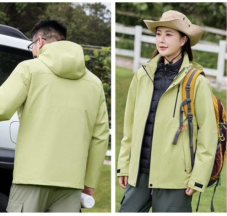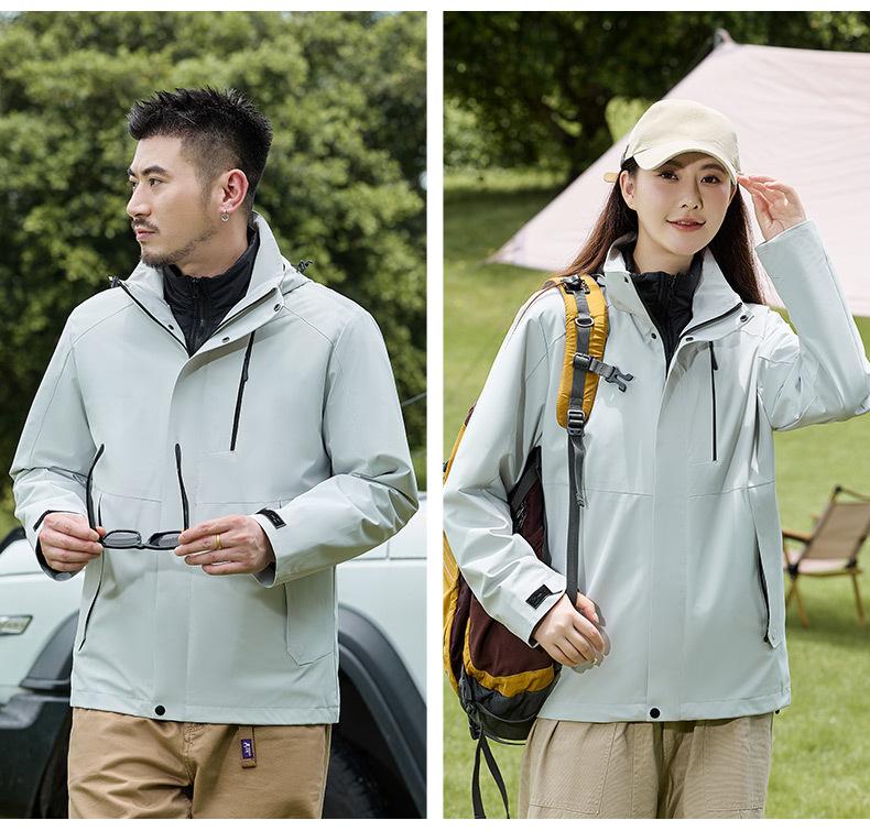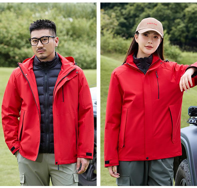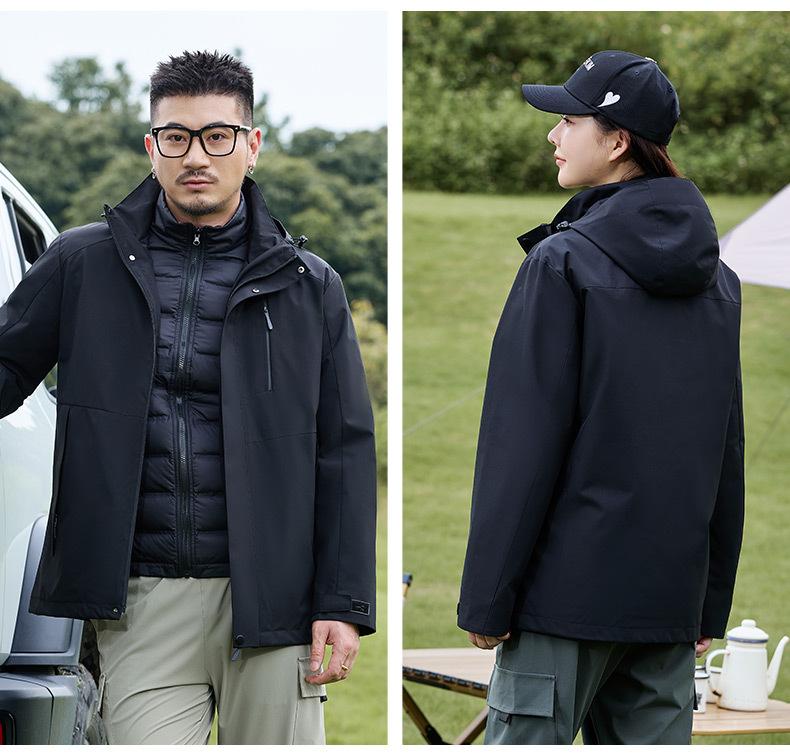 Jaqueta três em um dos homens outono e inverno à prova de vento quente destacável de duas peças das mulheres ao ar livre esqui montanhismo terno maré