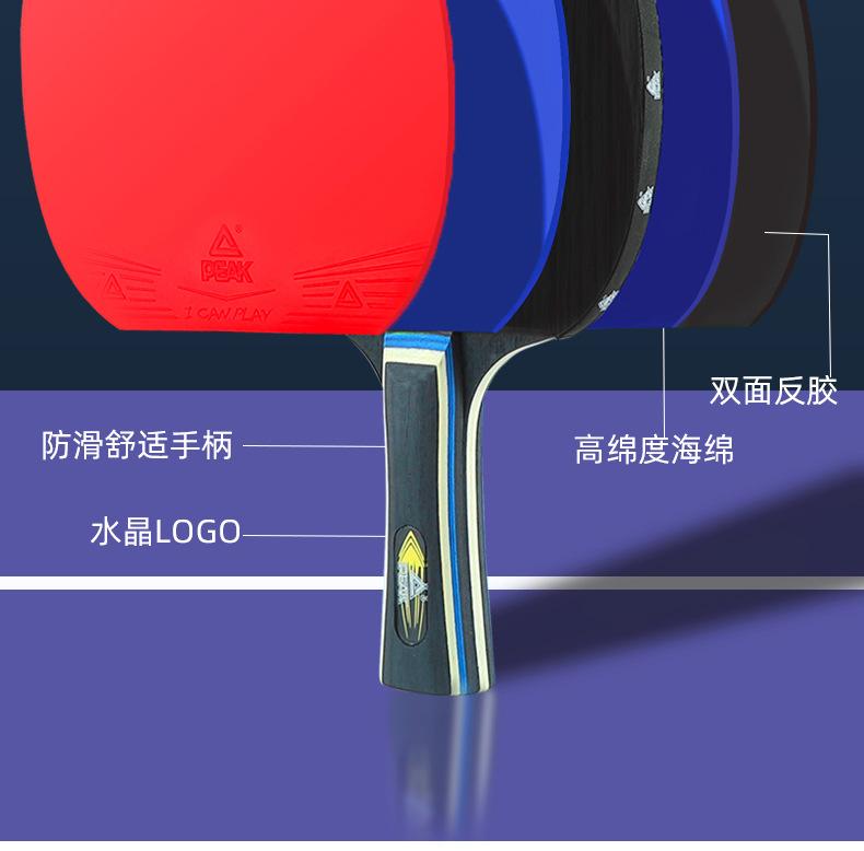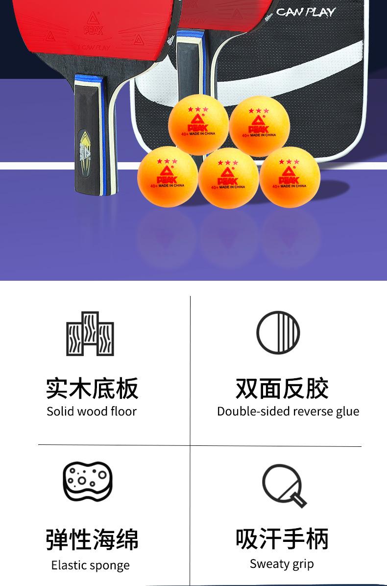 Raquete de Tênis de Mesa Peak Cinco Estrelas Iniciante Tênis de Mesa Empunhadura Reta Empunhadura Horizontal Crianças Estudantes do Ensino Fundamental Nível Profissional Dupla Empunhadura