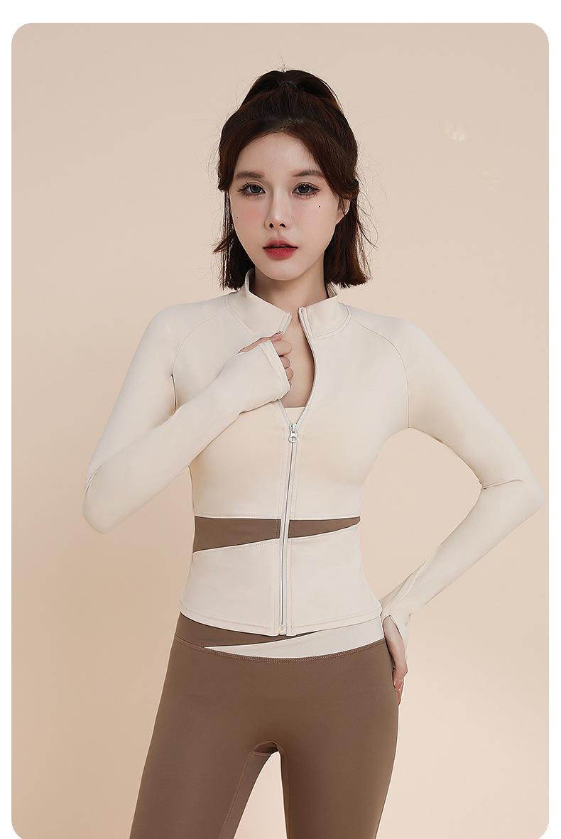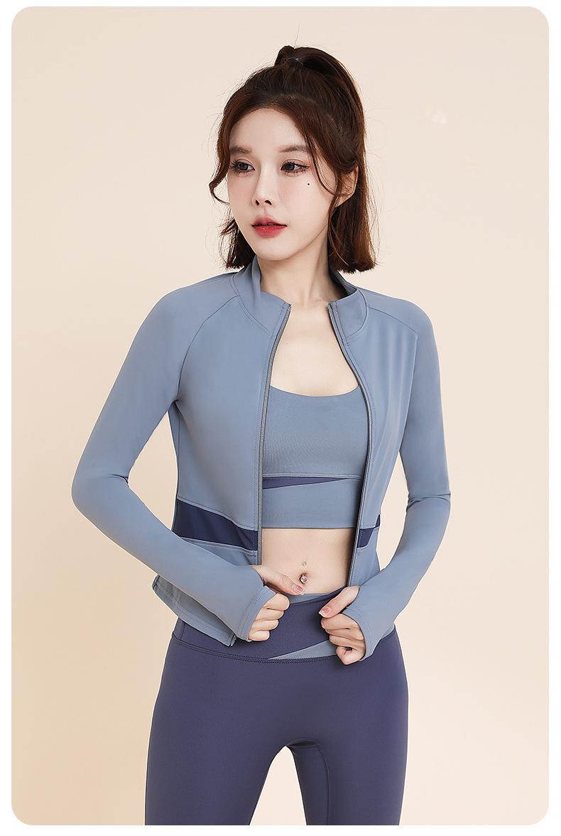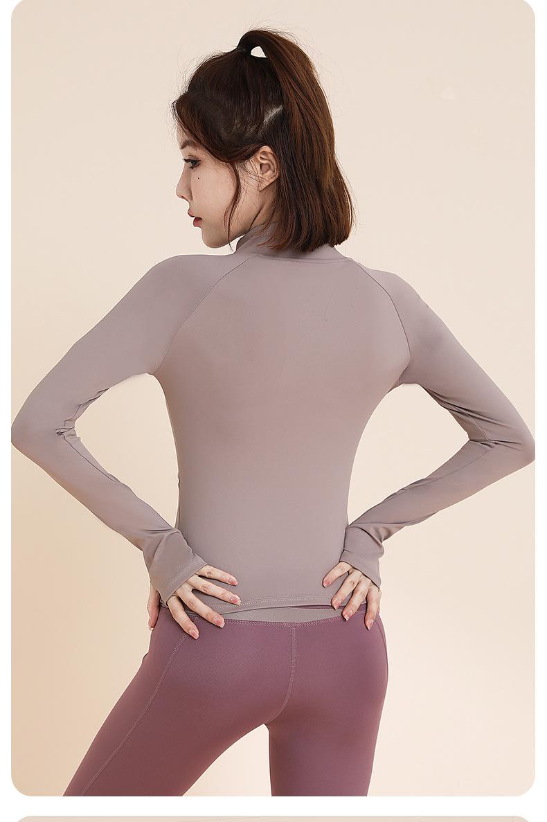 Compre Casaco de fitness feminino outono slim-fit secagem rápida top esportivo profissional corrida gola de manga comprida slim-fit pilates yoga terno no atacado no Joom.pro