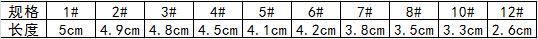 1#(length 5CM), 2#(length 4.9CM), 3#(4.8CM), 4#(length 4.5CM), 5#(4.1CM), 6#(length 4.2CM), 7#(length 3.8CM), ...