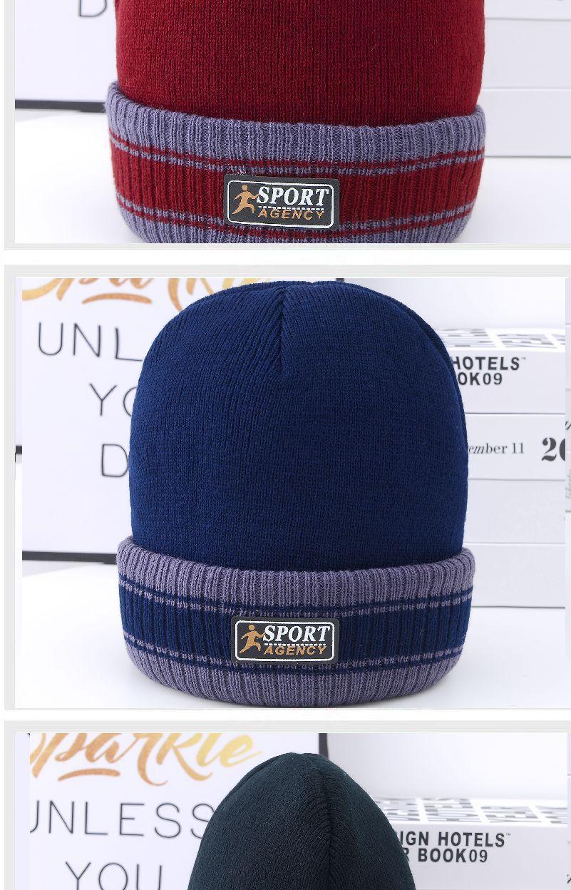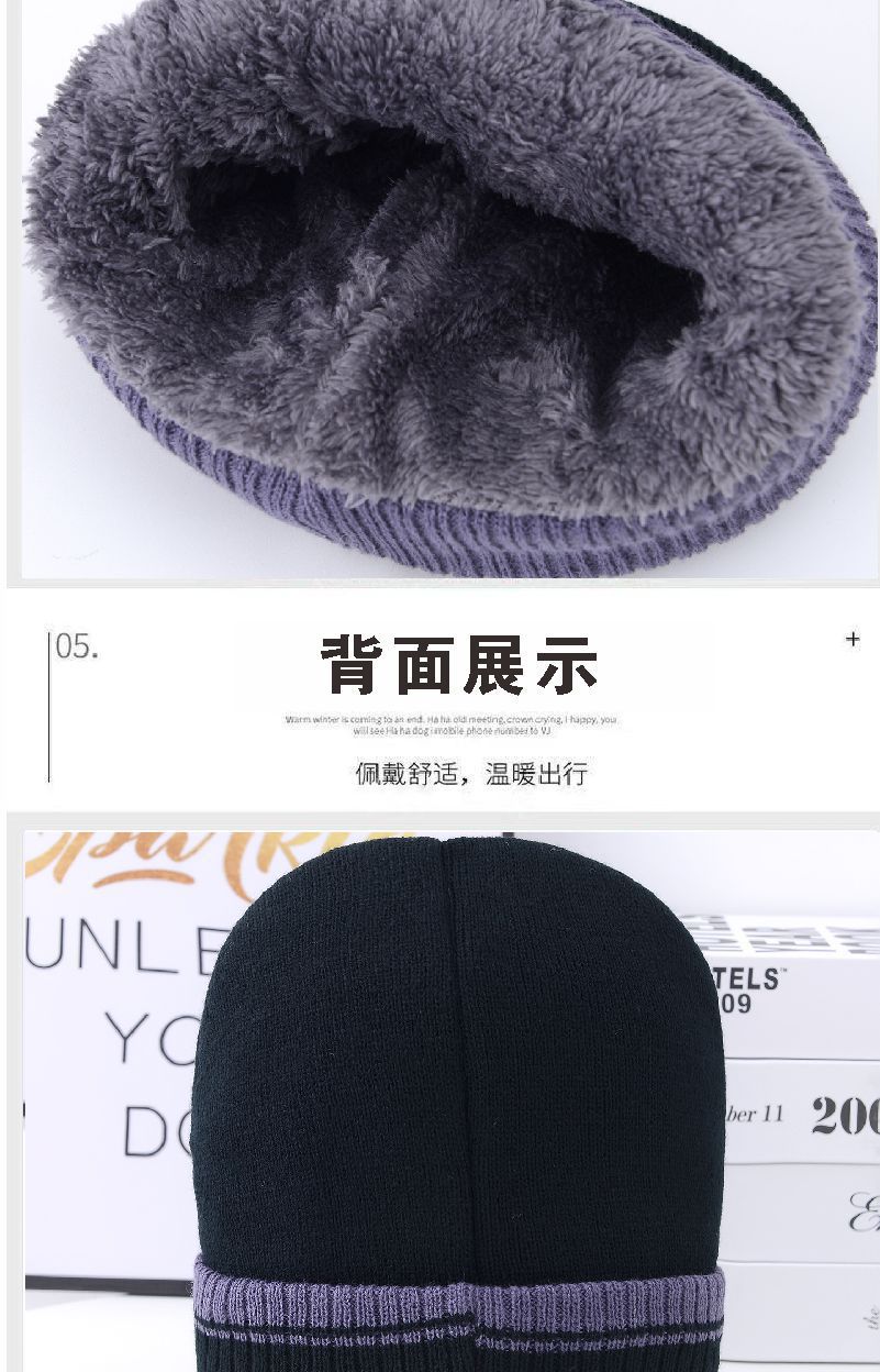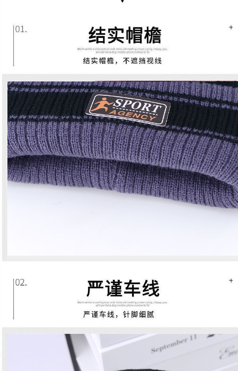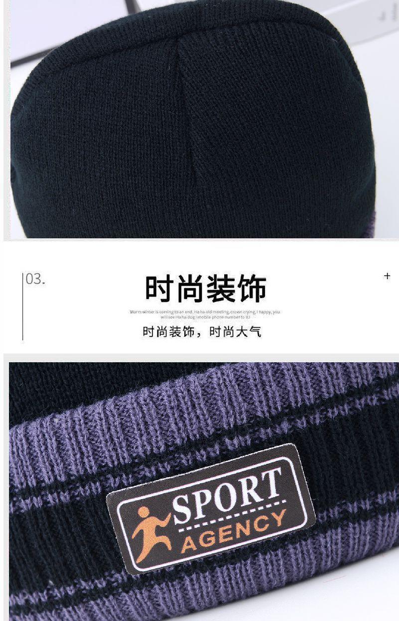 Inverno Novo engrossado pulôver masculino chapéu de lã de malha ao ar livre à prova de frio ciclismo masculino de lã forrada de lã quente carta chapéu de algodão
