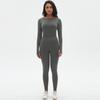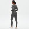 Terno de roupas de ioga sem costura europeu e americano Cintura alta Quadril Calças de pêssego Manga comprida apertada Top Running Fitness Terno esportivo