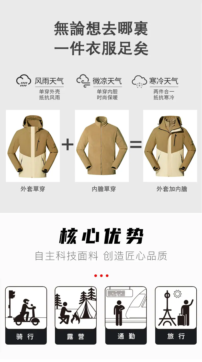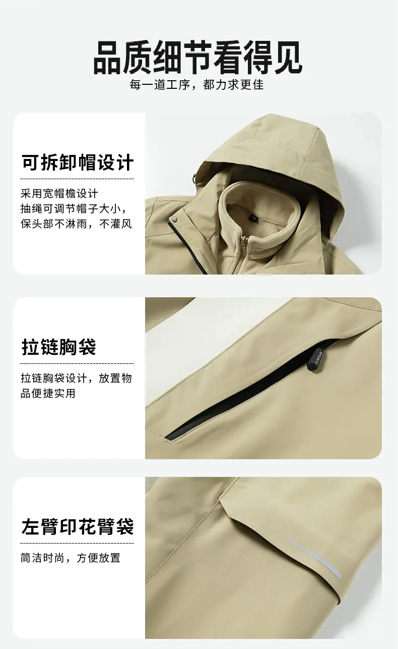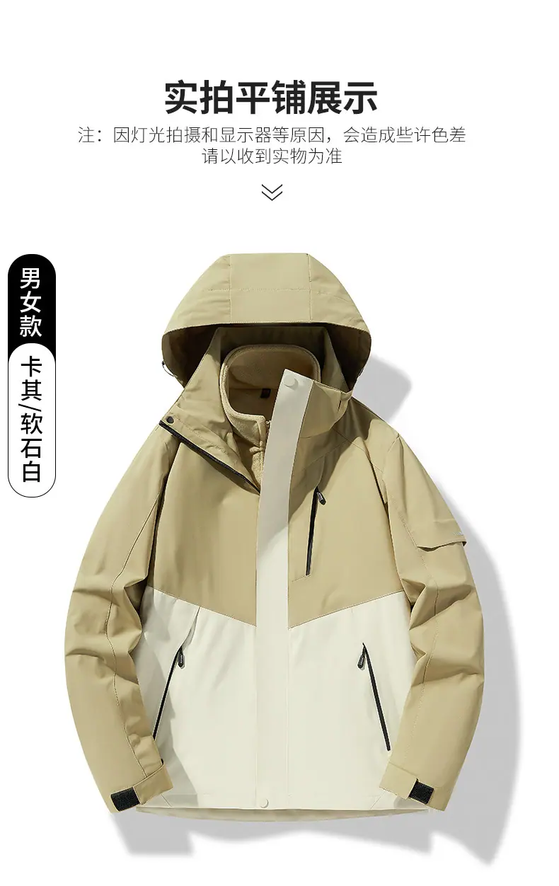 Jaqueta Feminina Três-Em-Um Repelente à Água 2025 Nova Forro Removível de Lã Polar Jaqueta Outdoor para Montanhismo Masculina Personalizada