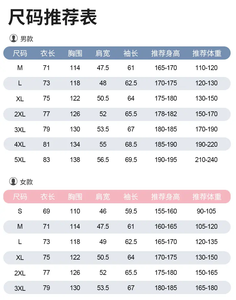 S, M, L, XL, XXL, XXXL, 4XL, 5XL