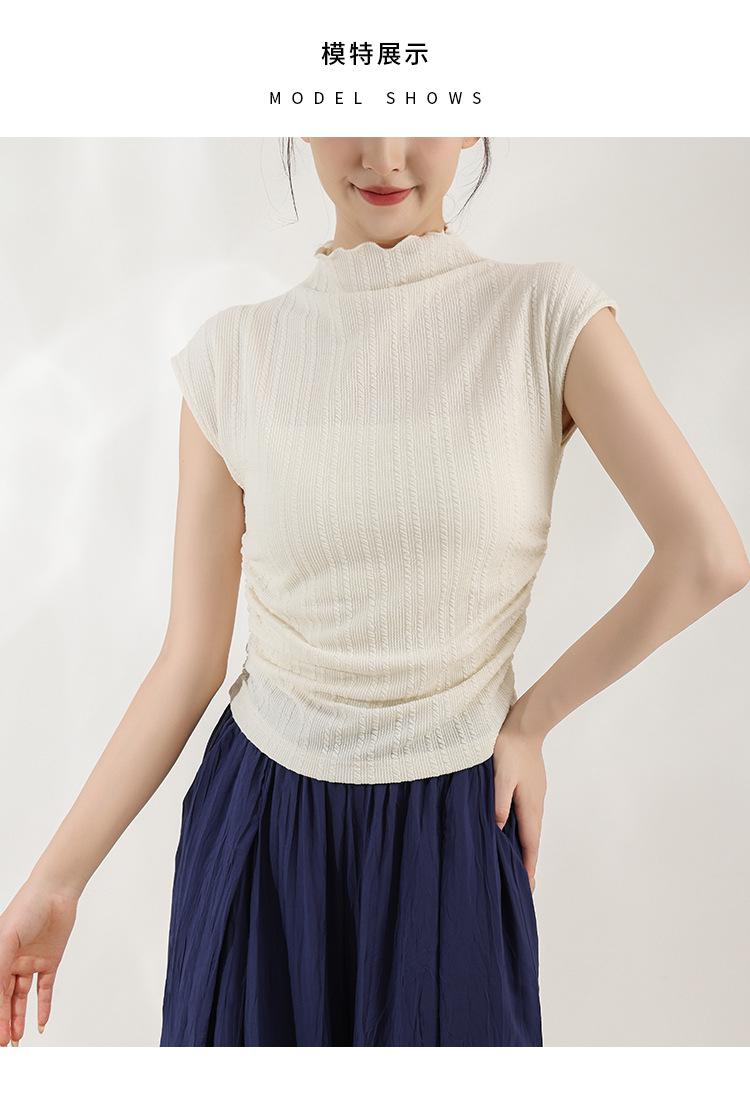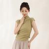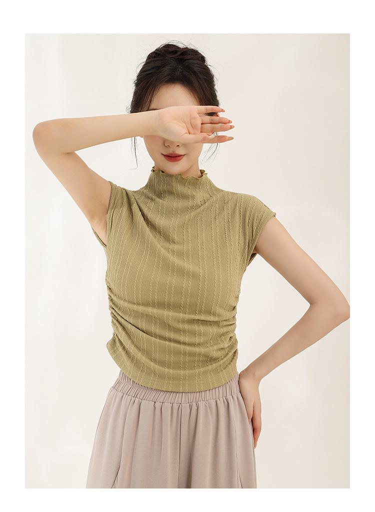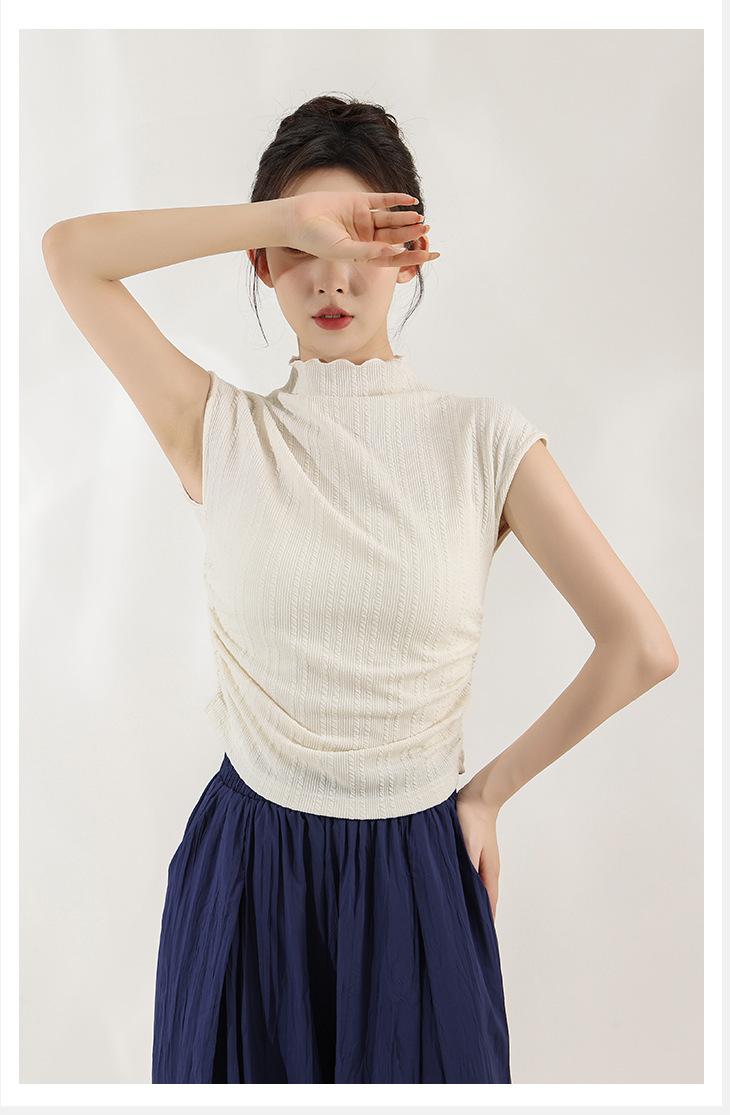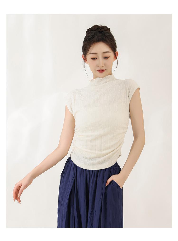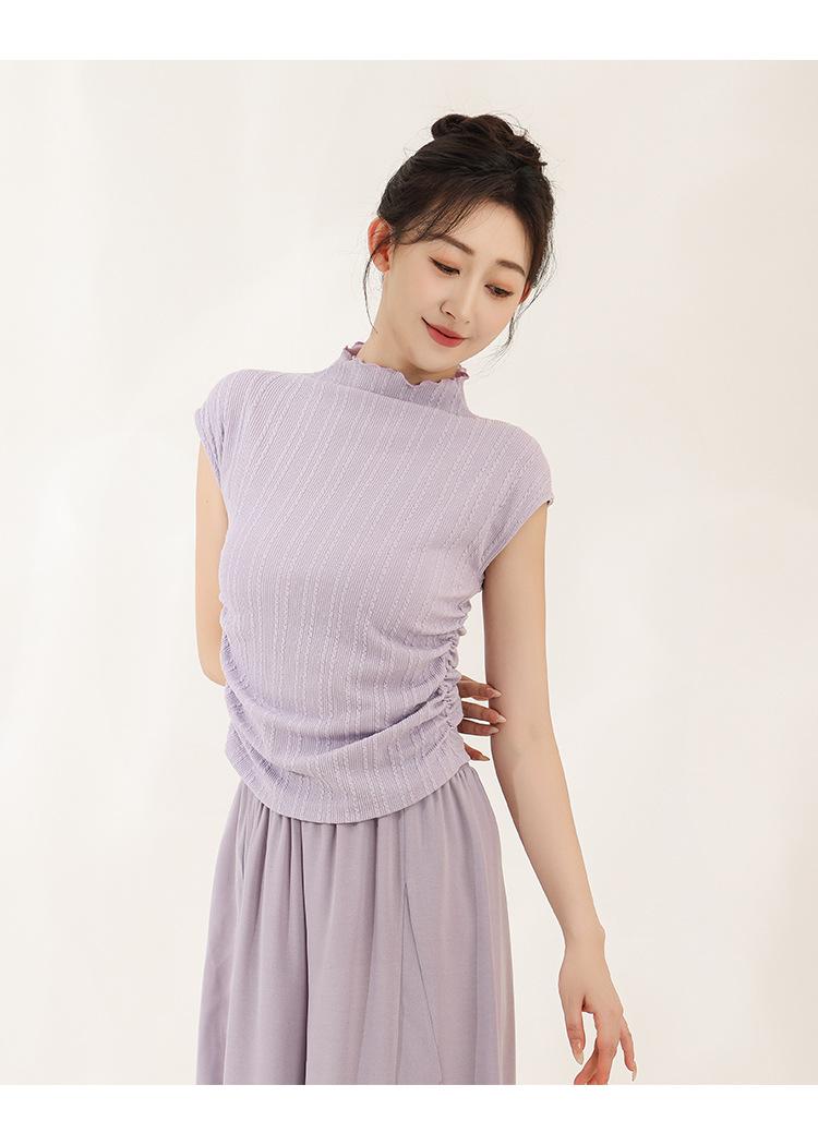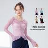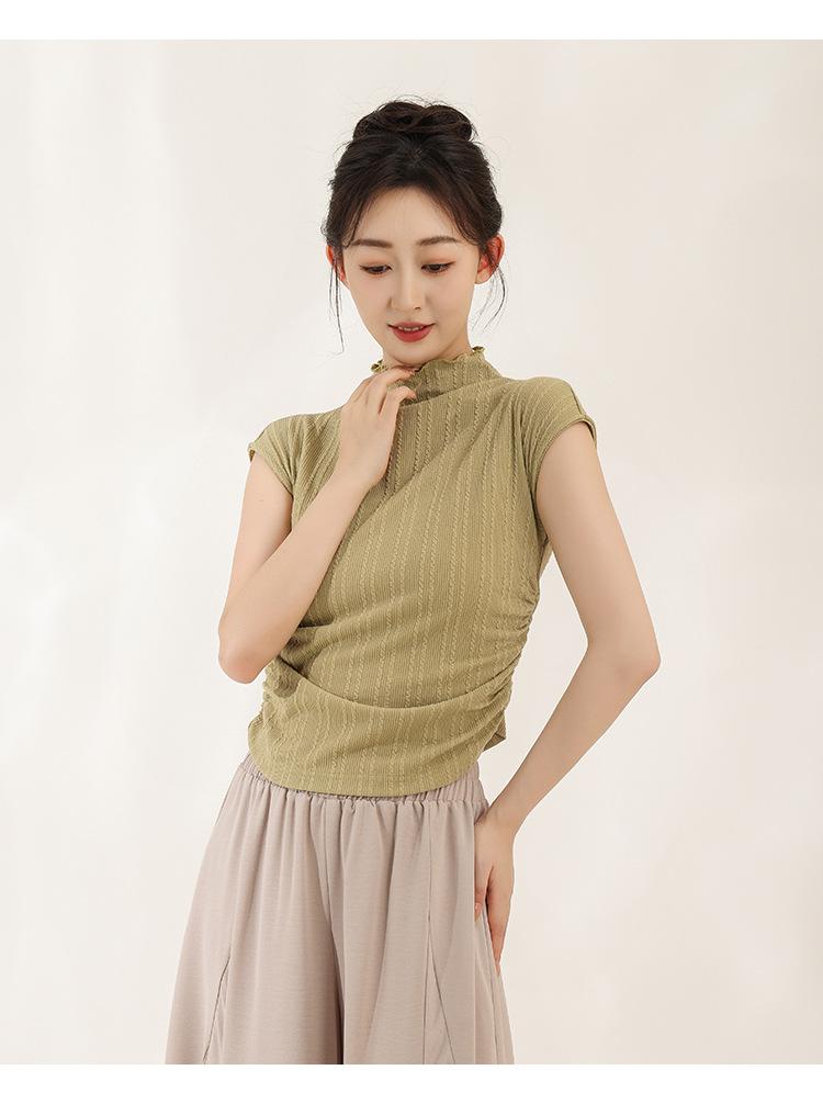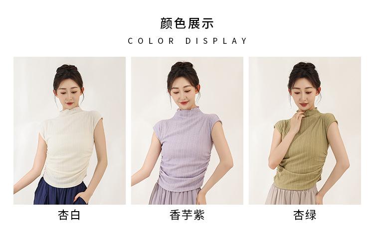 Top de dança clássica com textura slim fit e gola meia-alta, roupa de treino para dança chinesa moderna feminina para o dia a dia