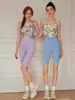 Lulu Calças Esportivas de Secagem Rápida Cinco Pontos Yoga Fitness Cintura Alta Exterior Vestindo Terno Estampado de Verão Colete Fixo no Peito