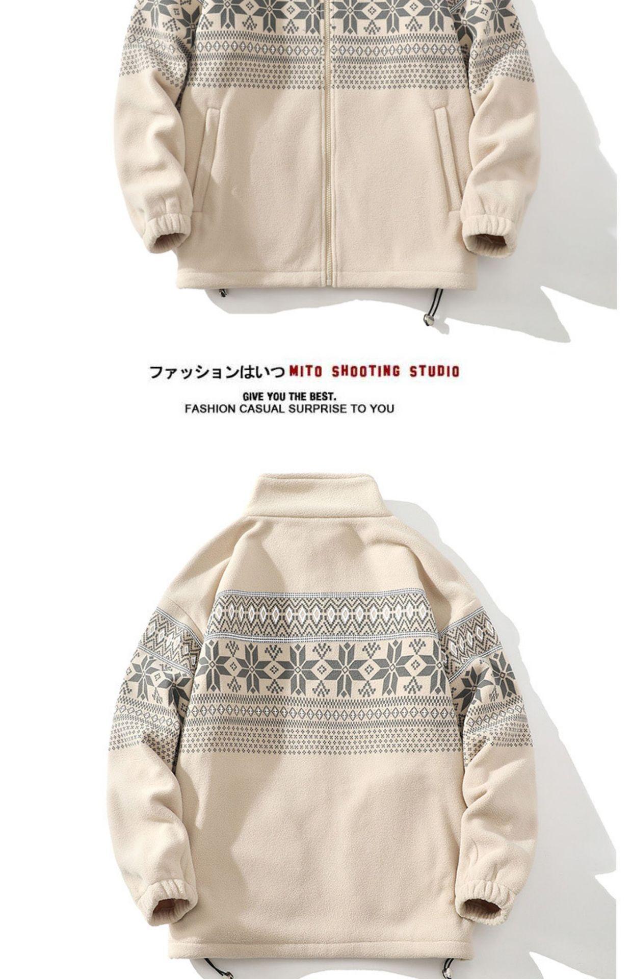 2024 Outono e Inverno Novo Suéter Masculino e Feminino Casais Cardigan com Zíper Polar Fleece Impresso Jaqueta Solto
