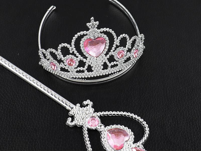 Em estoque congelado Princesa Coroa mágica vara trança terno crianças congelado coroa de três peças rosa