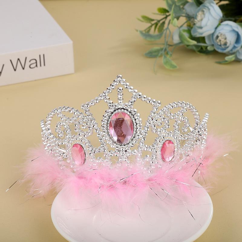 Fábrica direta plástico coroa acessórios de cabelo comércio exterior quente festa de aniversário crianças fada pelúcia coroa cocar
