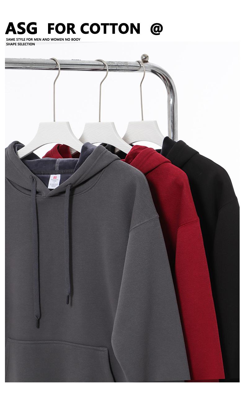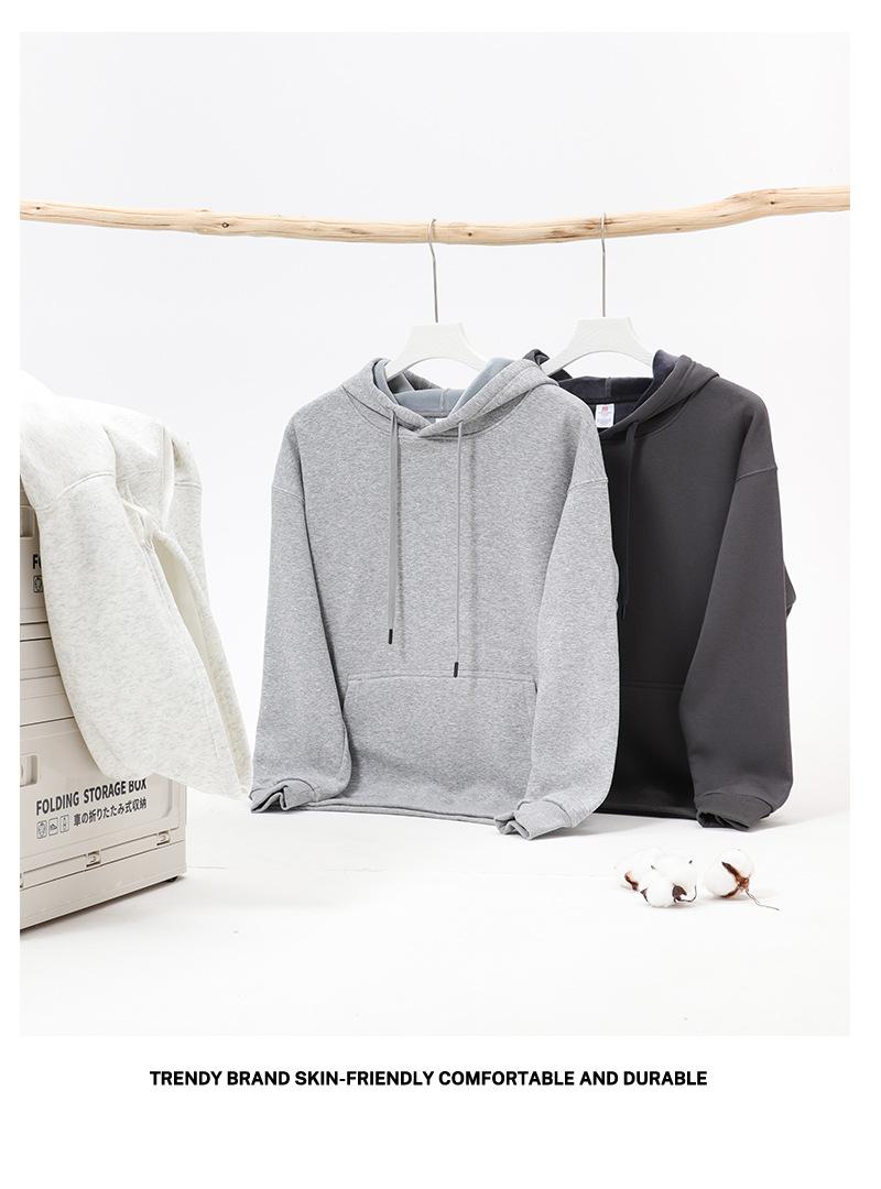 Outono e inverno pesado com capuz moletom forrado de lã roupas de trabalho impressão fixa LOGO ombro solto corpo lazer engrossado moletom bordado