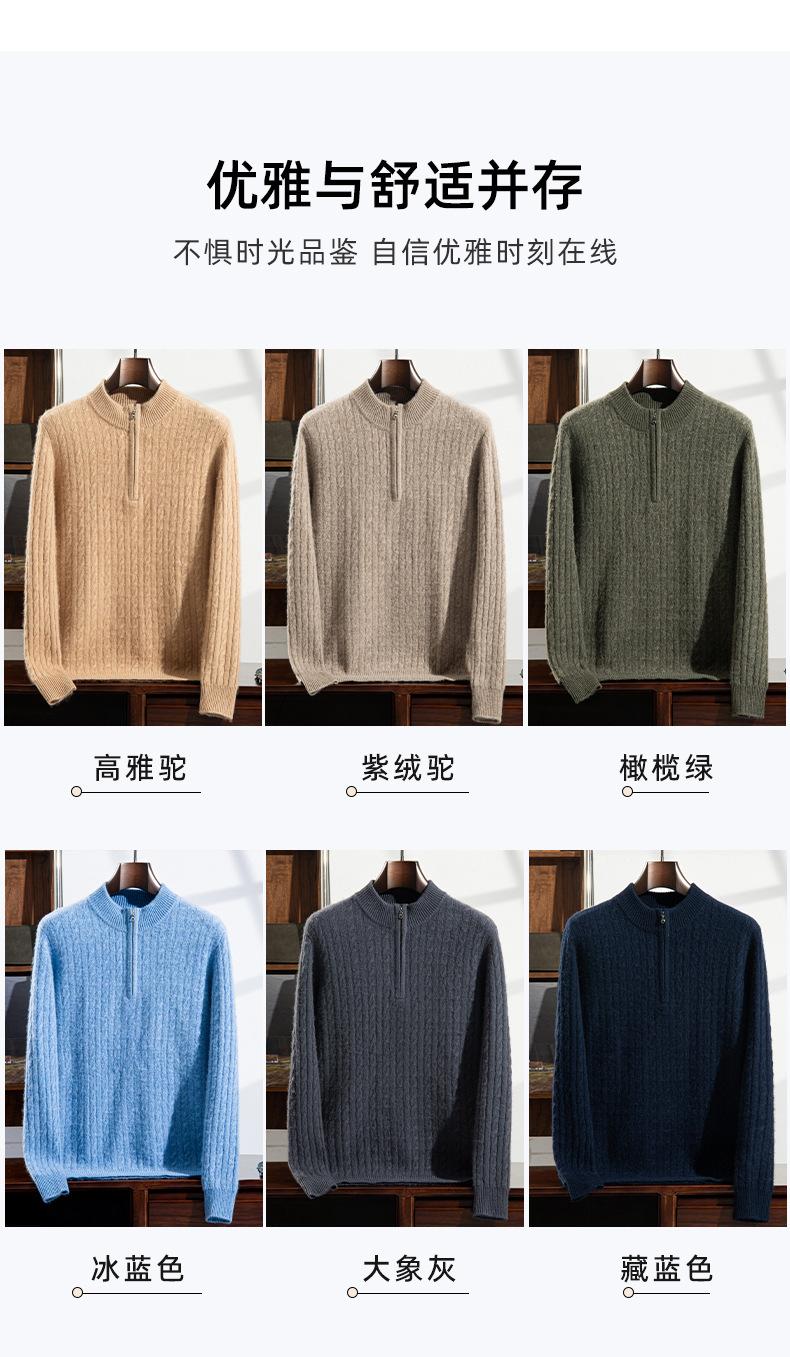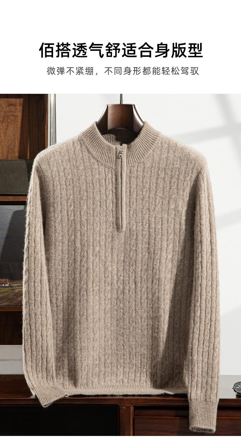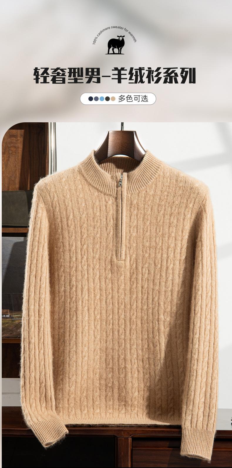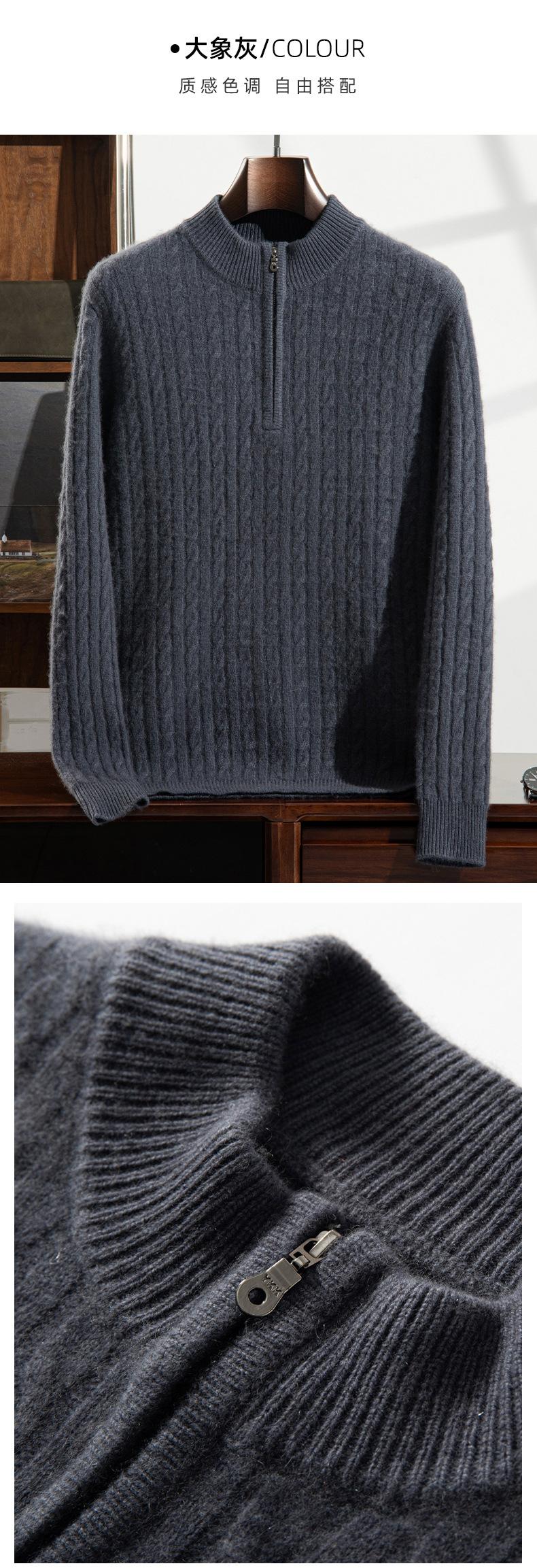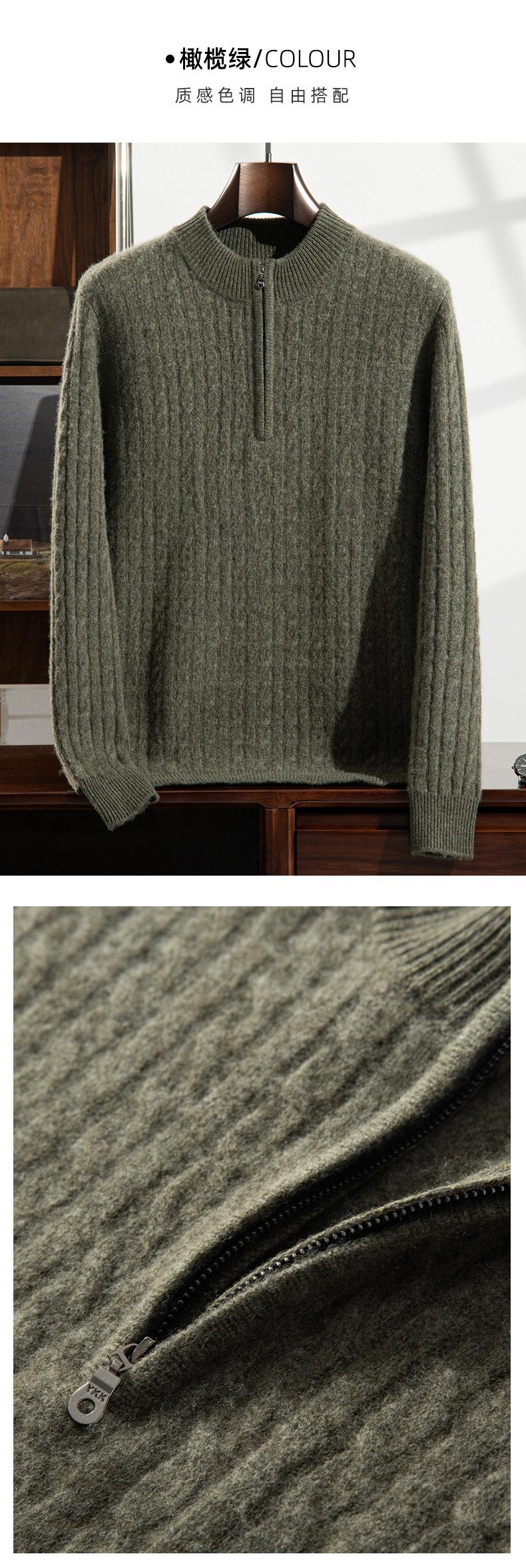 Outono e Inverno 2024 Novo Suéter de Caxemira Masculino Meia Gola Alta Zíper Suéter de Gola Alta Solto Suéter Casual