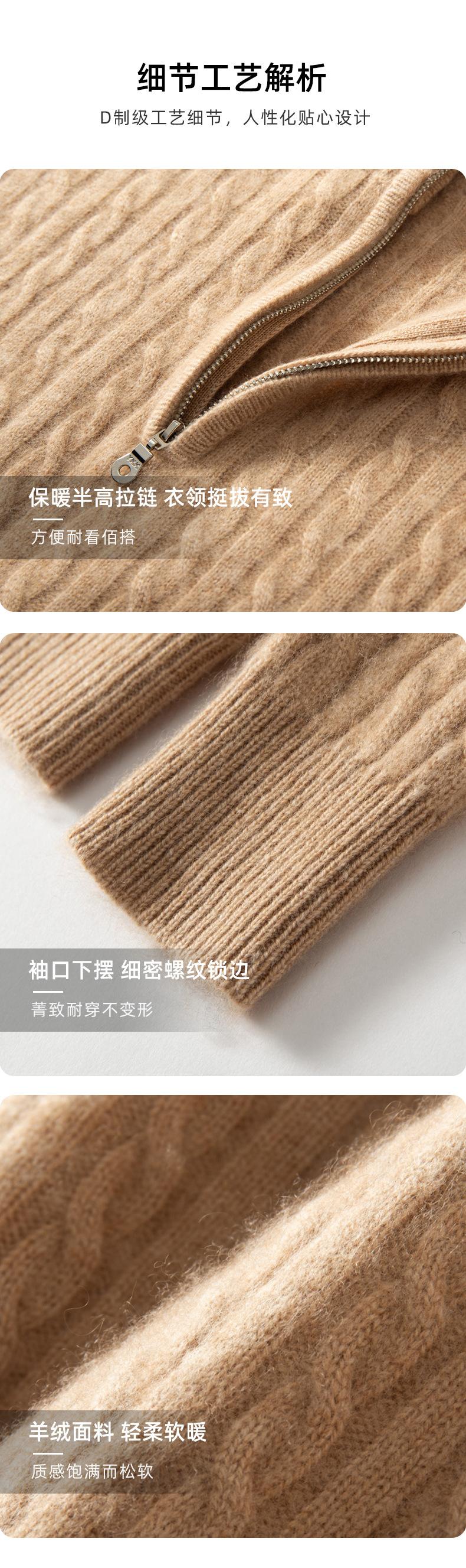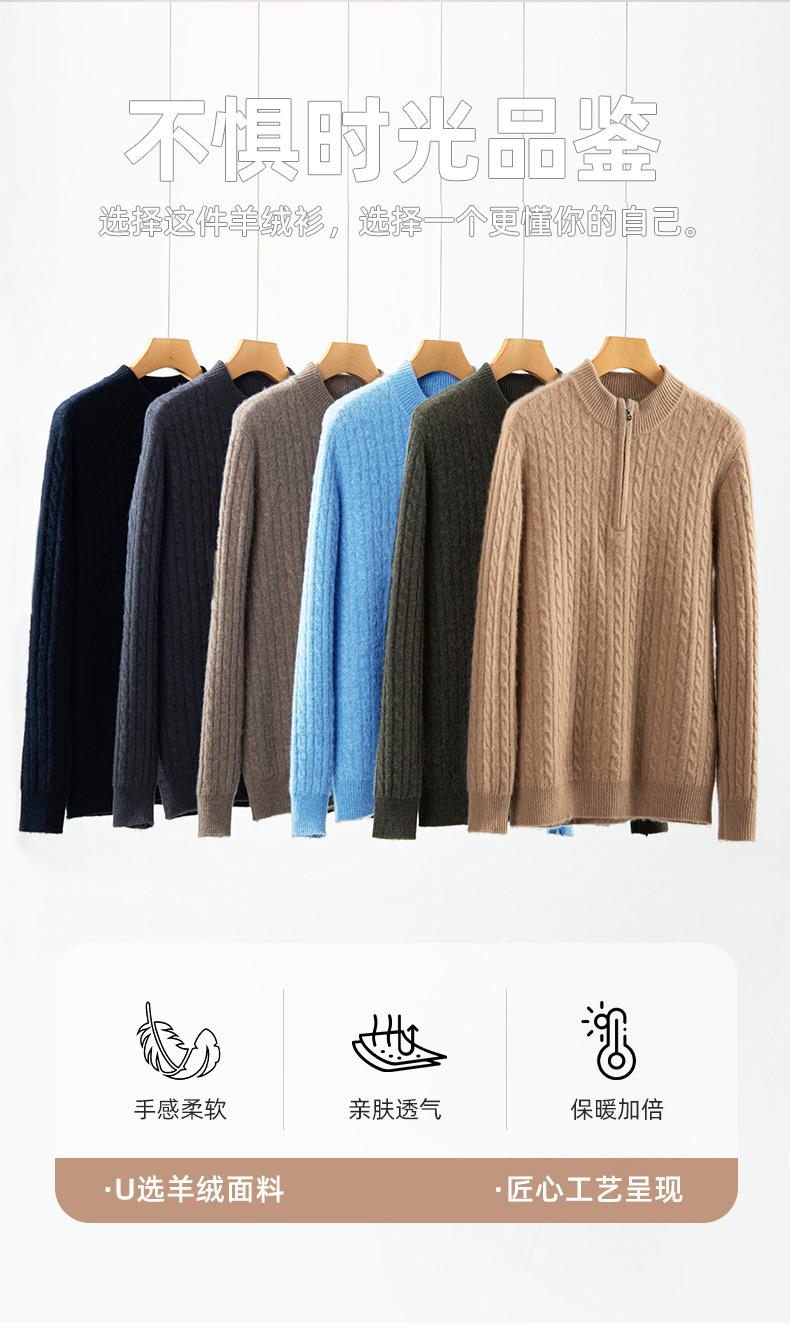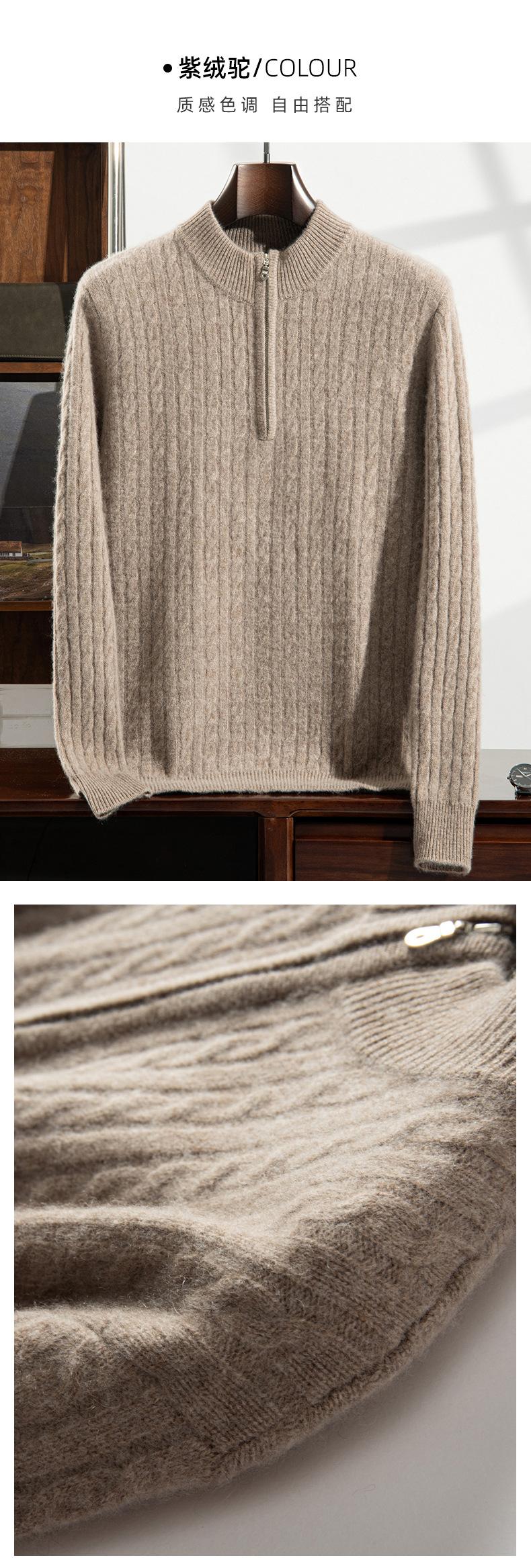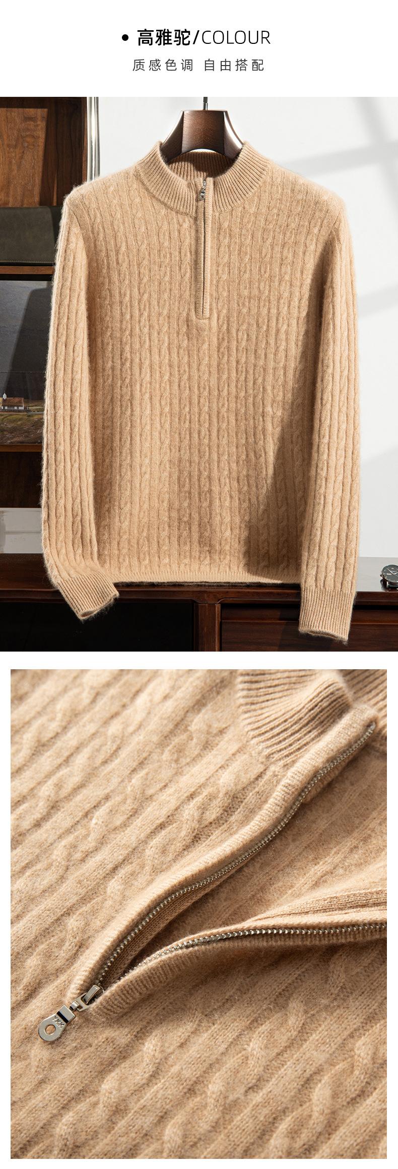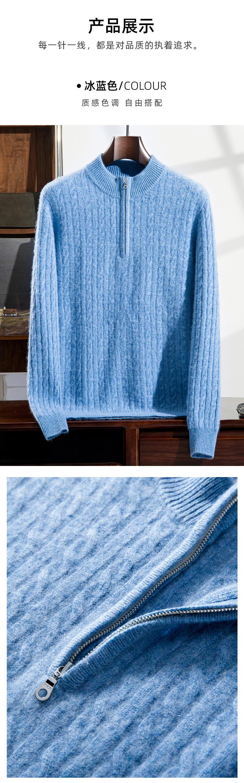 Outono e Inverno 2024 Novo Suéter de Caxemira Masculino Meia Gola Alta Zíper Suéter de Gola Alta Solto Suéter Casual